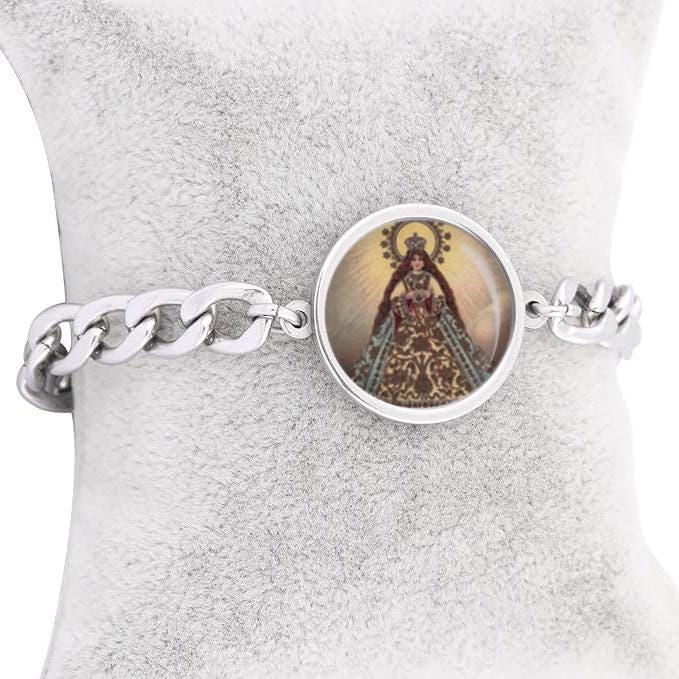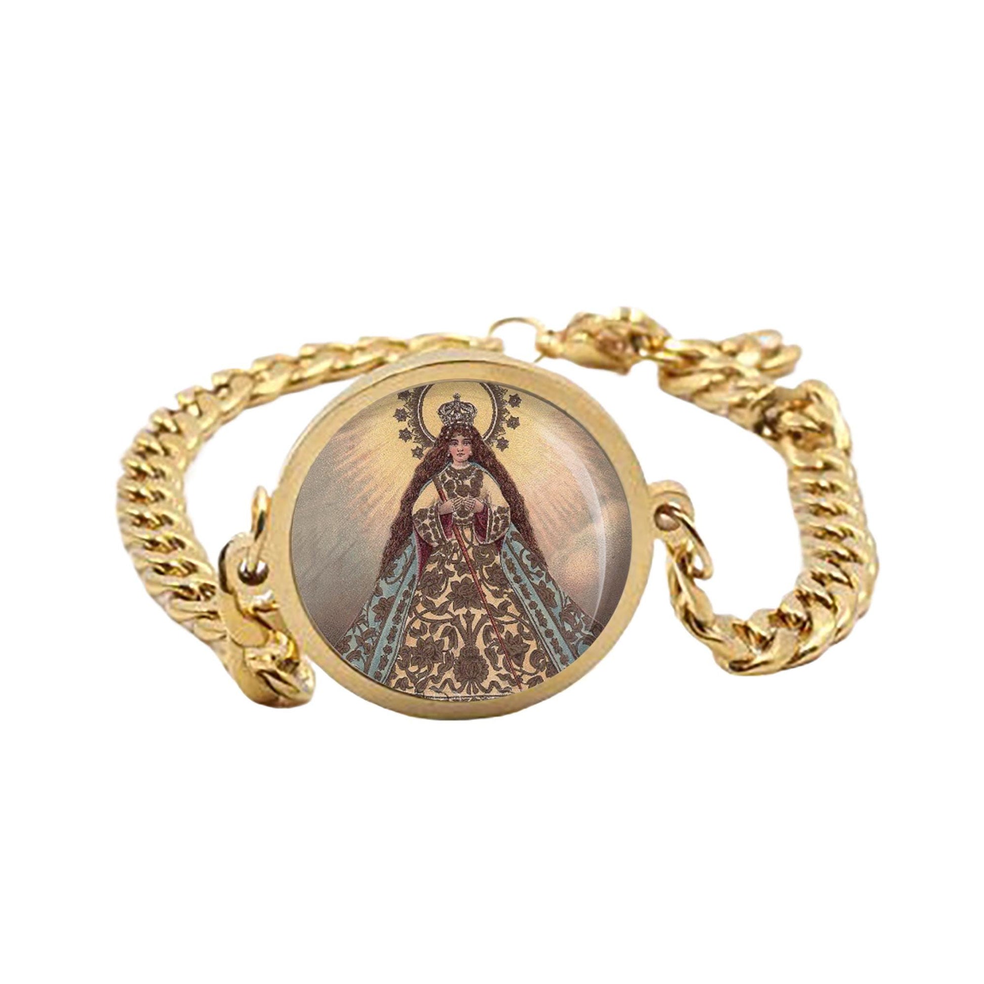 Our Lady Antipolo Peace Mary Curb Bracelet Gold or Silver tone Religious Jewelry Simple Chain