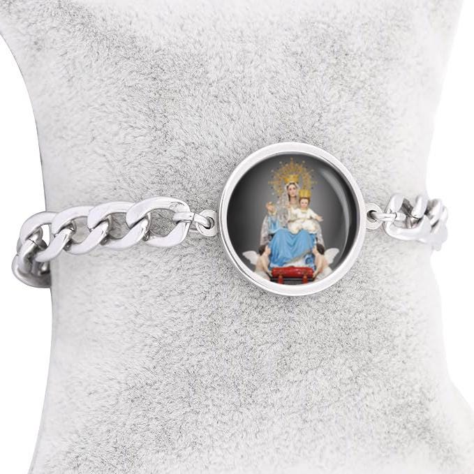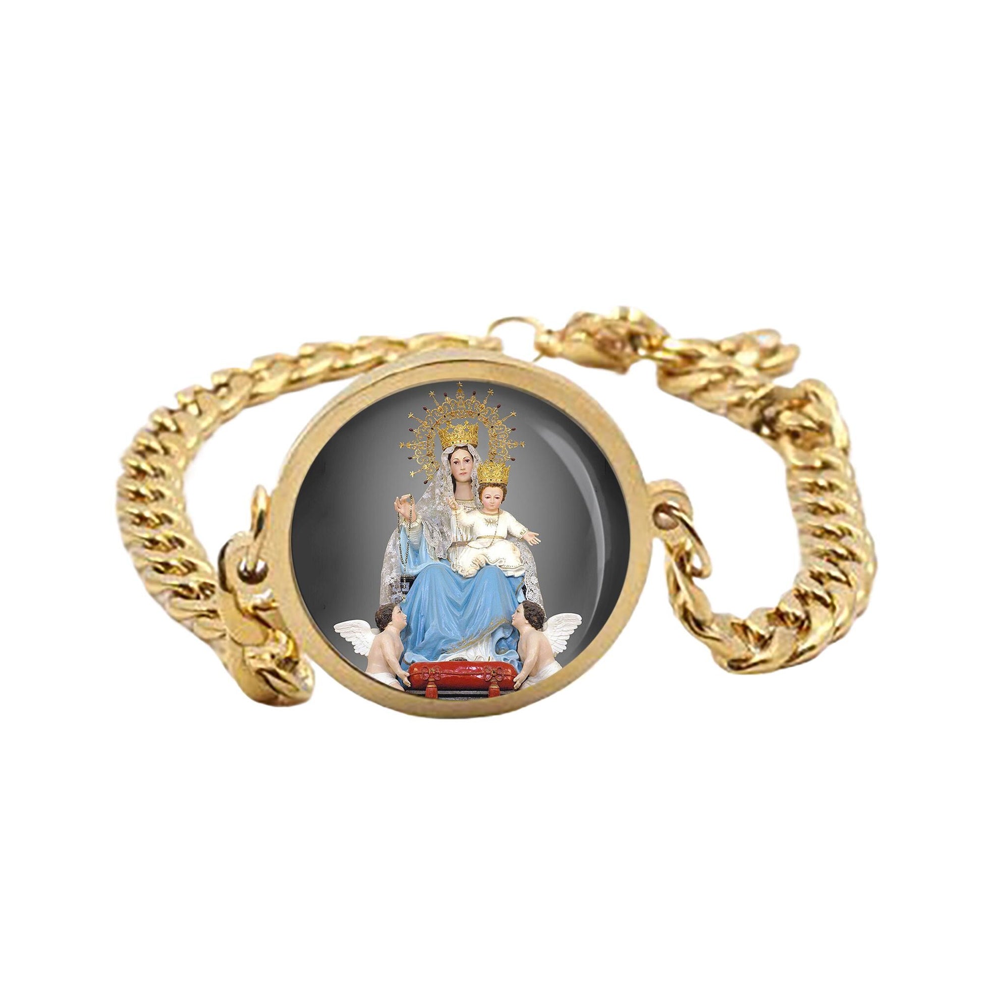 Our Lady Arabia Mary Curb Bracelet Gold or Silver tone Religious Jewelry Simple Chain