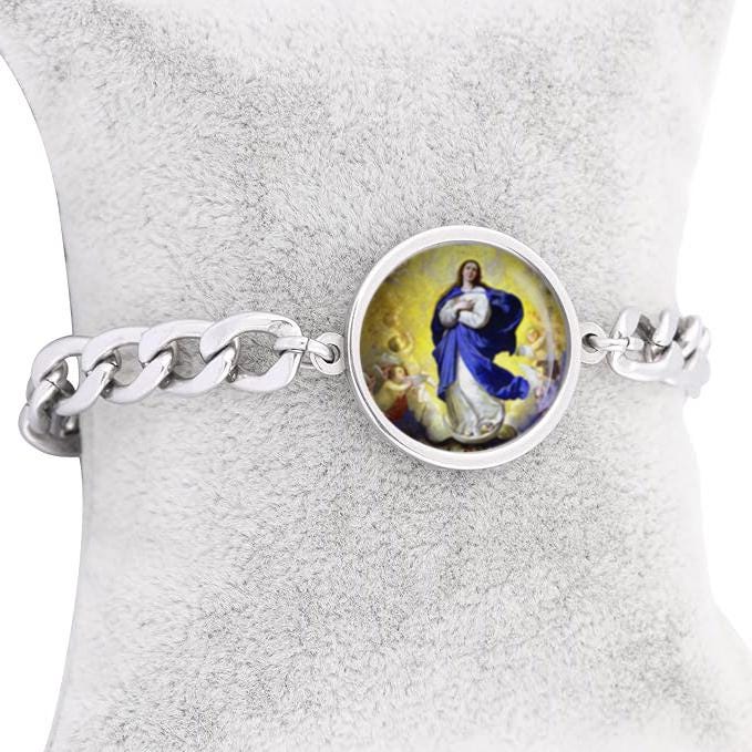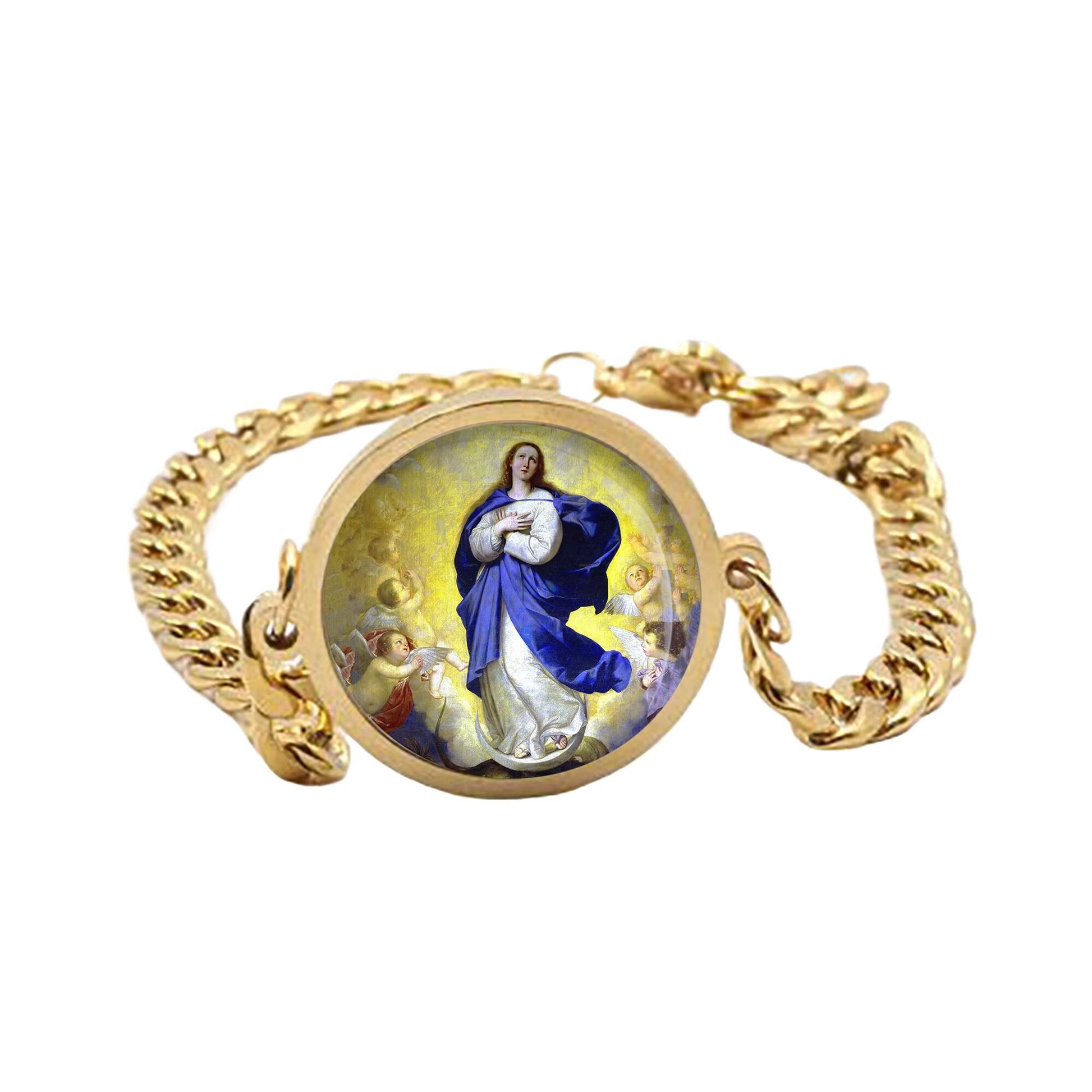 Our Lady Assumption Mary Curb Bracelet Gold or Silver tone Religious Jewelry Simple Chain