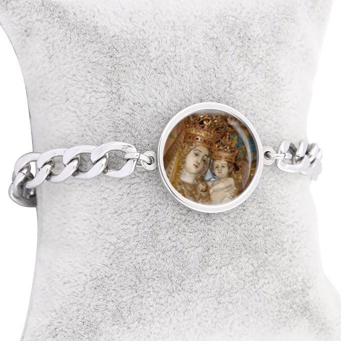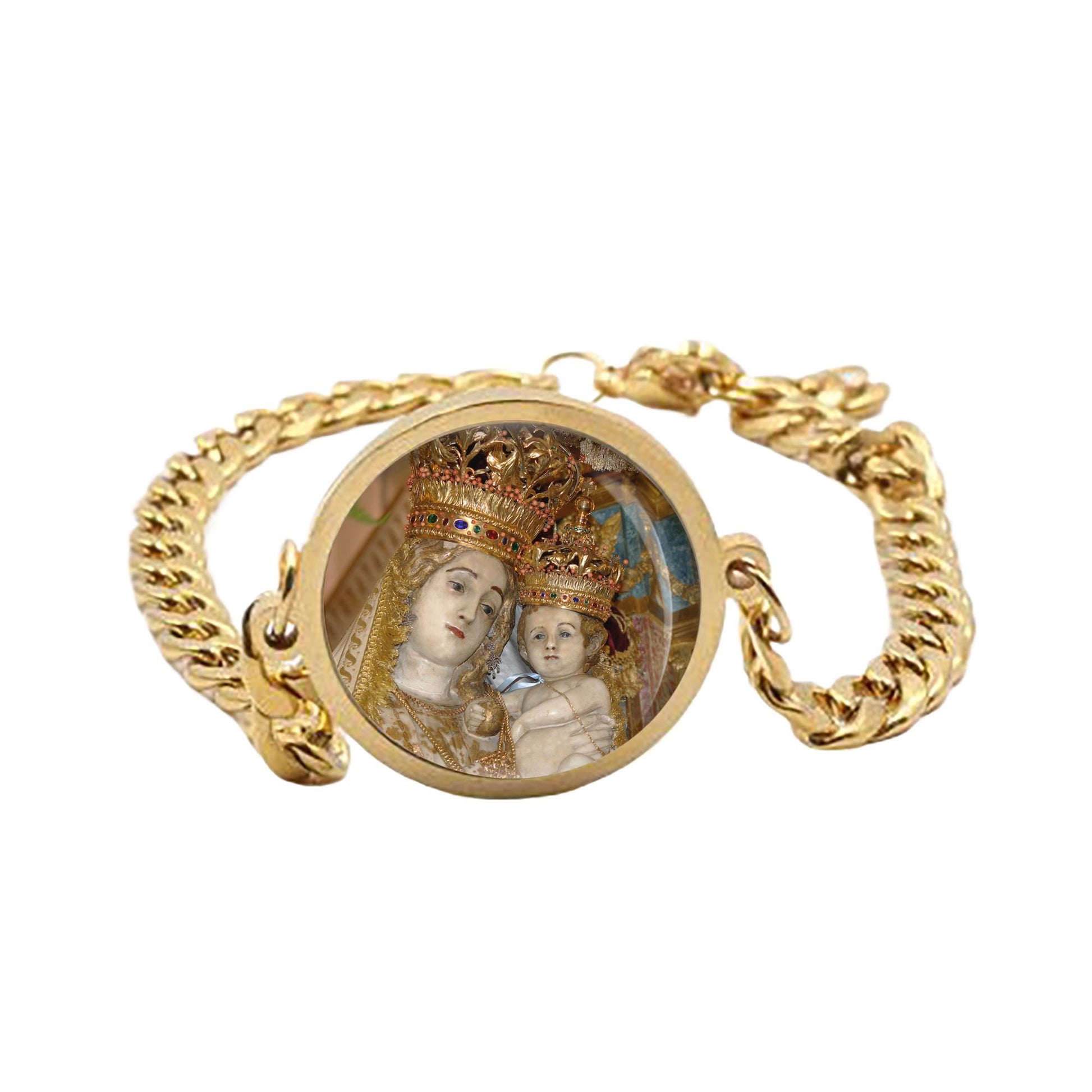 Our Lady Audience Udienza Curb Bracelet Gold or Silver tone Religious Jewelry Simple Chain