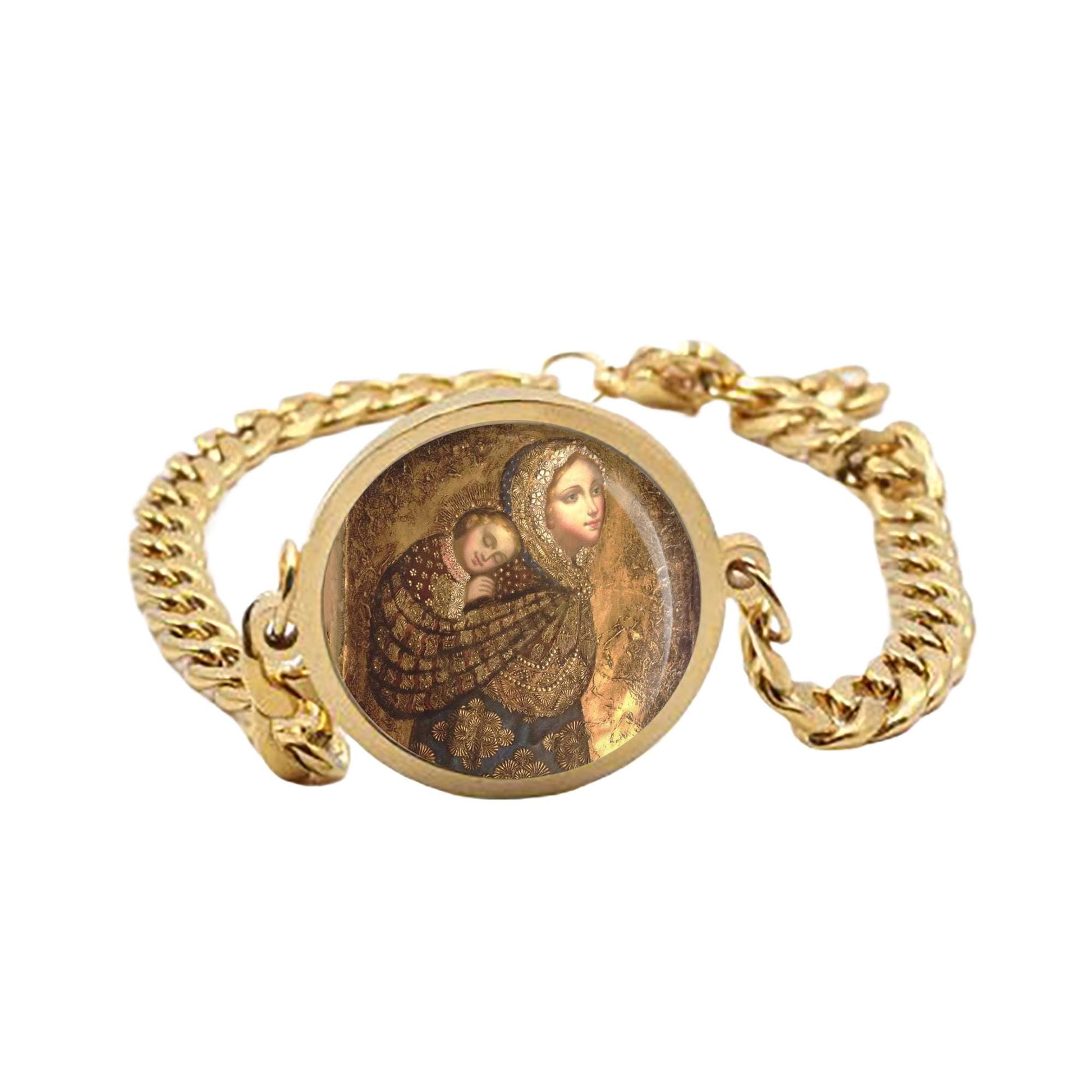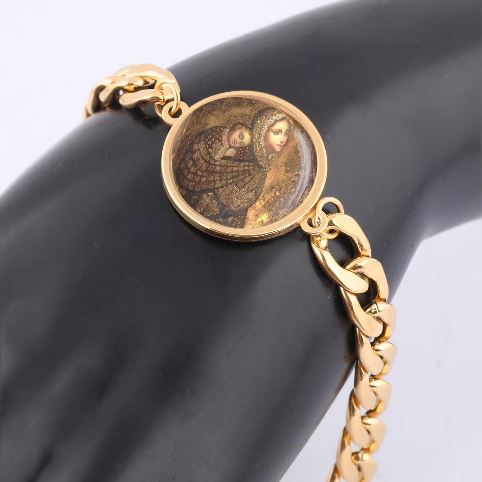 Our Lady Babywearing, Mother And Child Curb Bracelet Gold or Silver tone Religious Jewelry Simple Chain