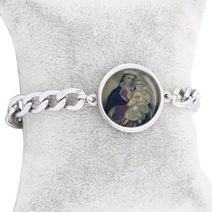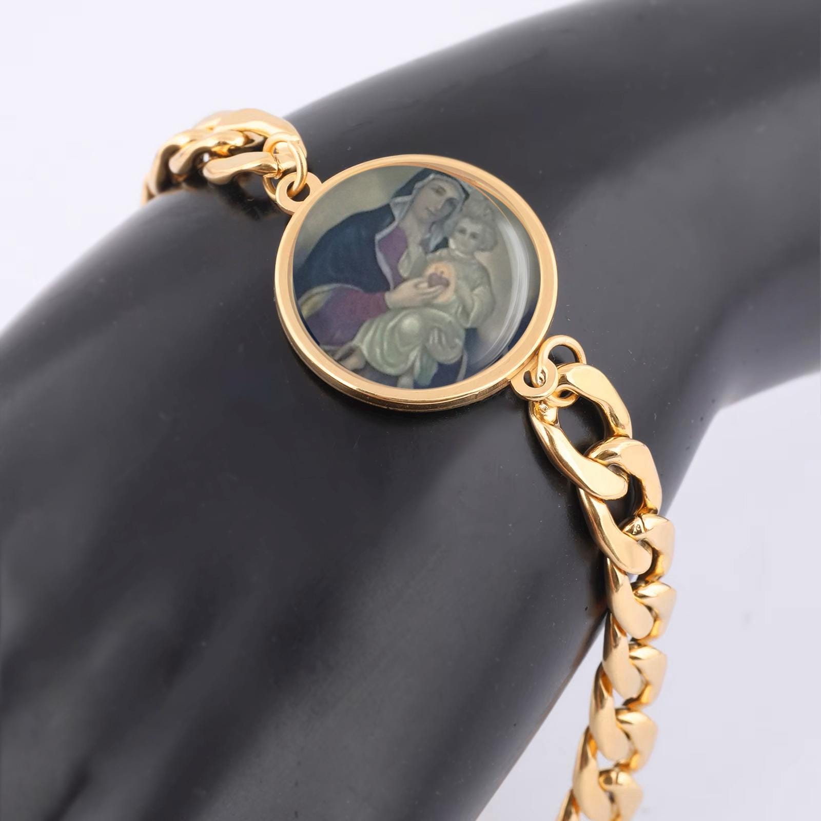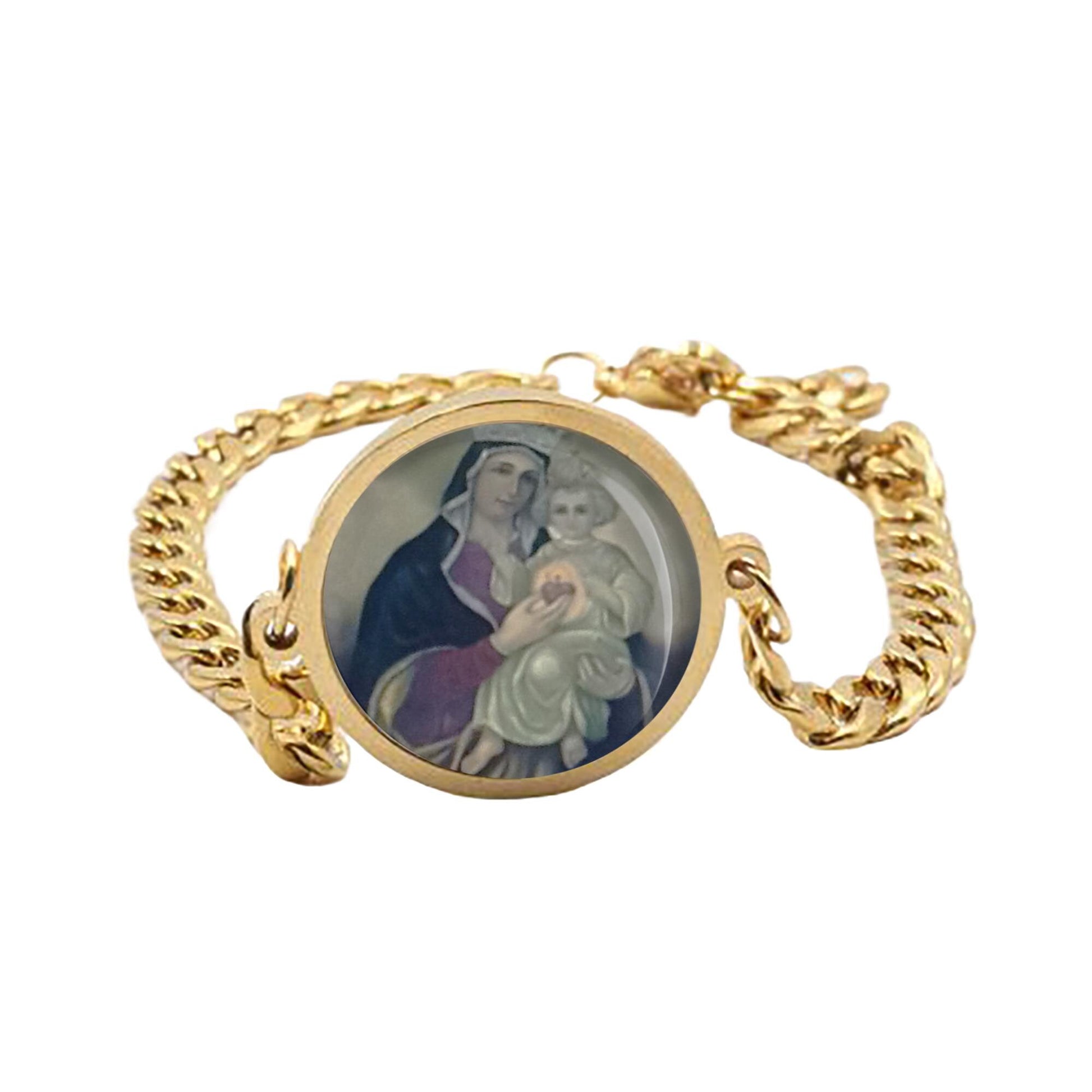Our Lady Blessed Immaculate Heart Mary Curb Bracelet Gold or Silver tone Religious Jewelry Simple Chain