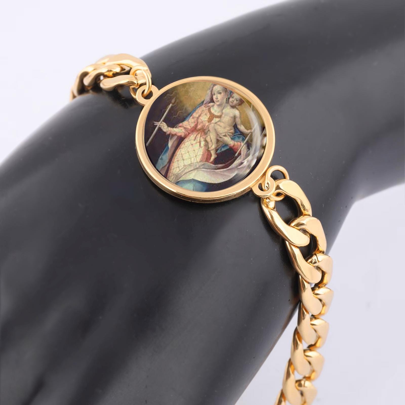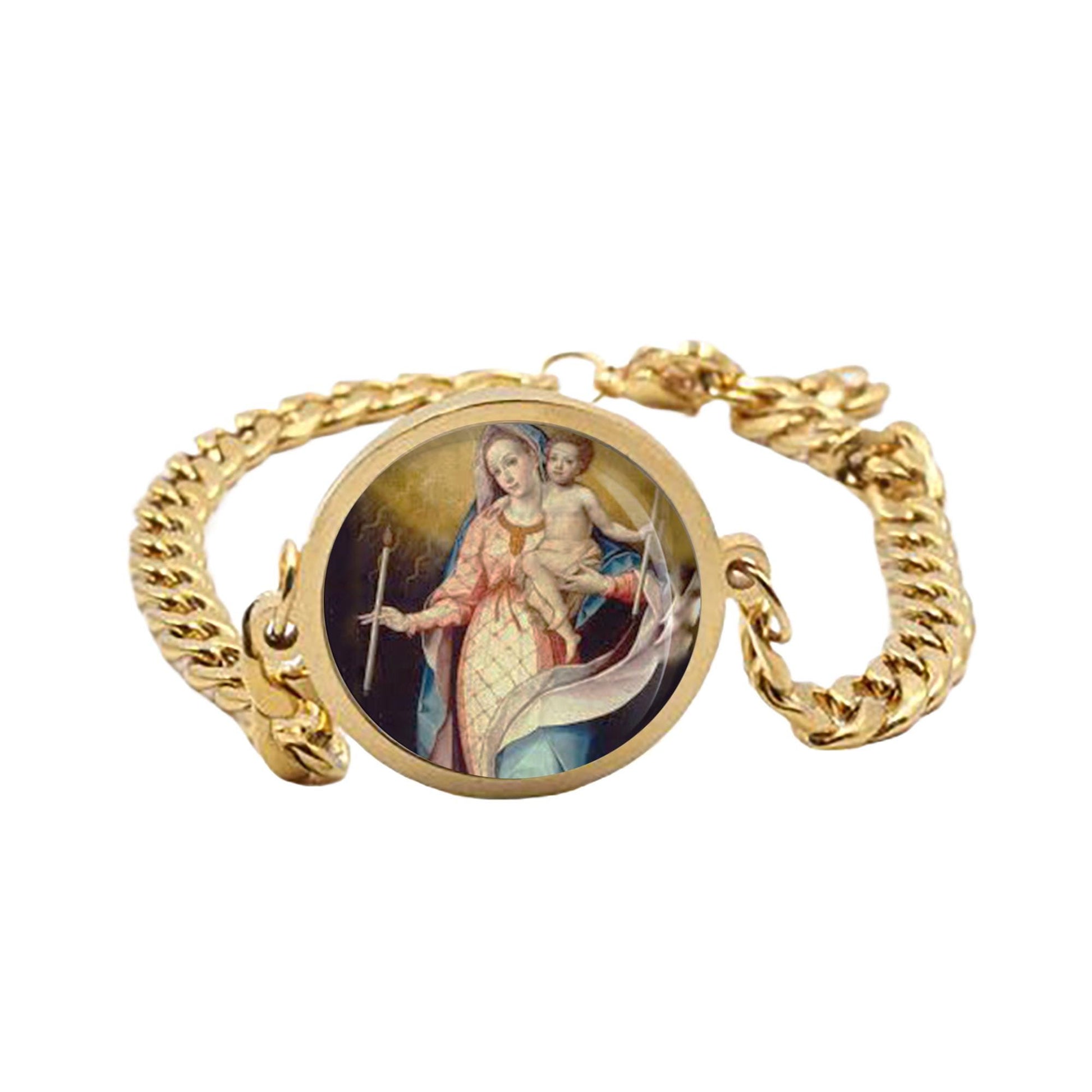 Our Lady Candelaria Bracelet Gold or Silver tone Religious Mother Mary Jewelry Simple Chain