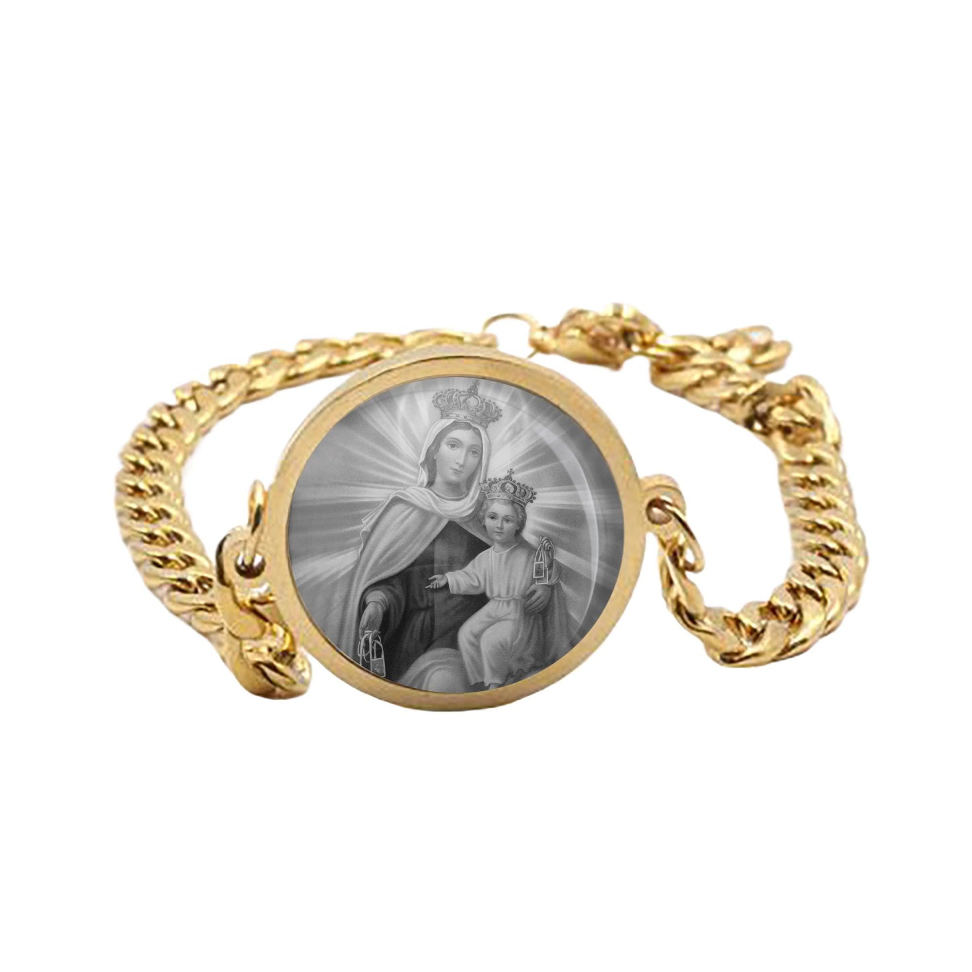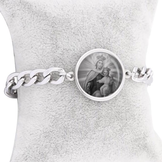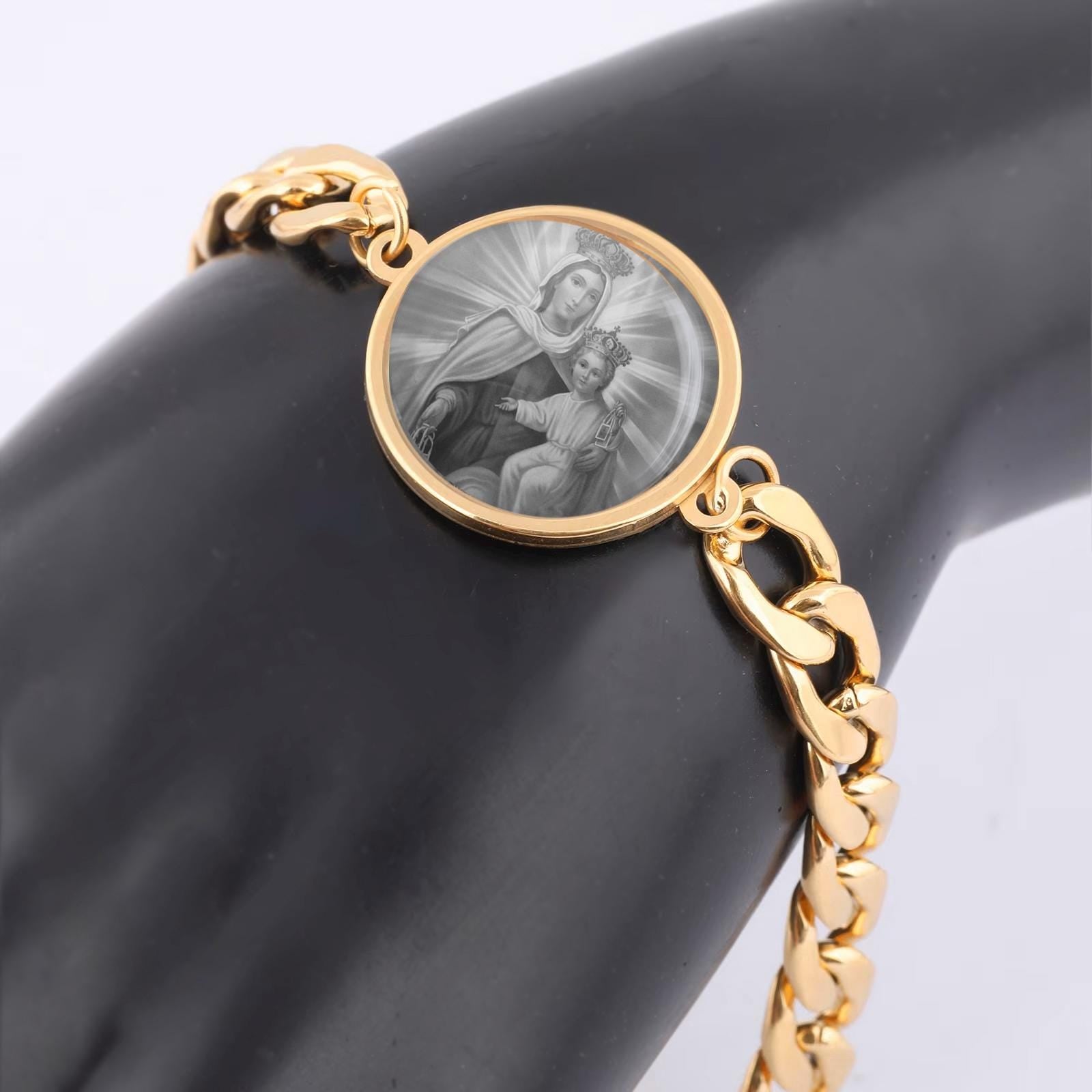Our Lady Carmel Curb Bracelet Gold or Silver tone Religious Jewelry Simple Chain