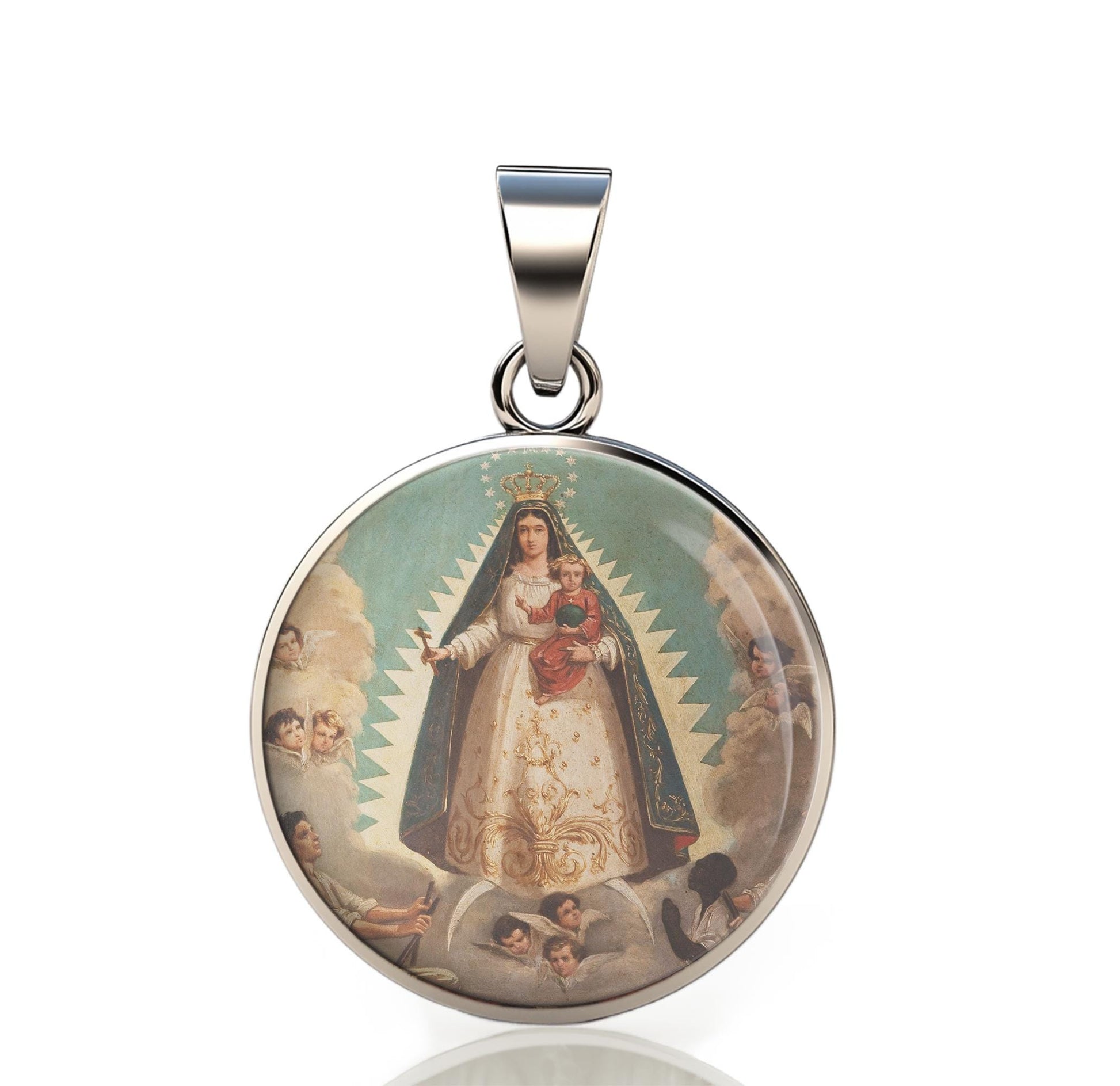 Our Lady Charity Cuba Virgin Catholic Mary 925 Sterling Silver Round Pendant Christian Religious Medal Small 20mm