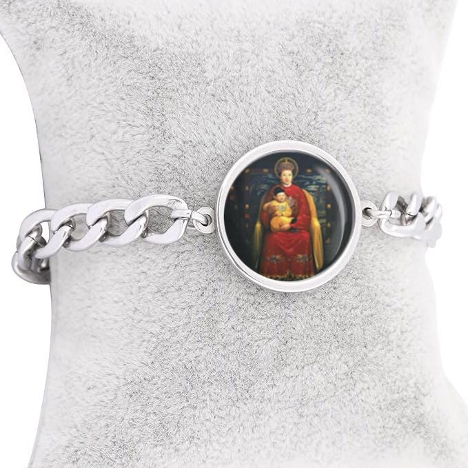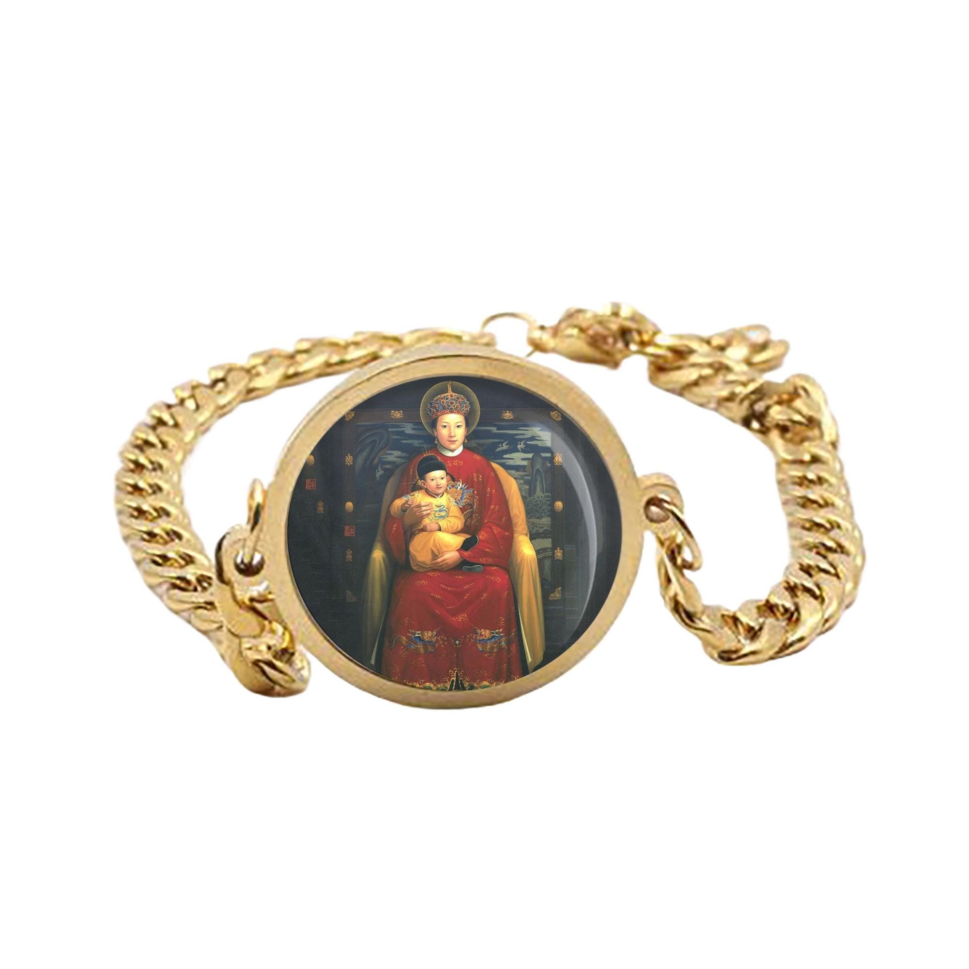 Our Lady China In Ming Curb Bracelet Gold or Silver tone Religious Jewelry Simple Chain