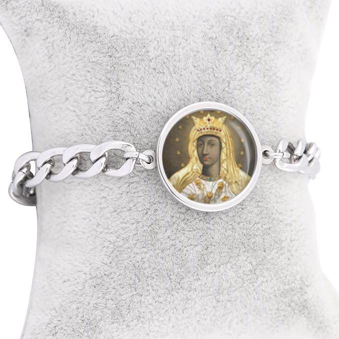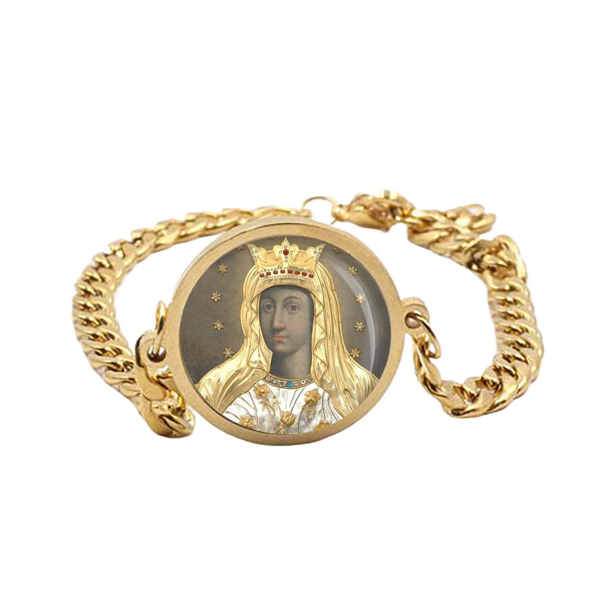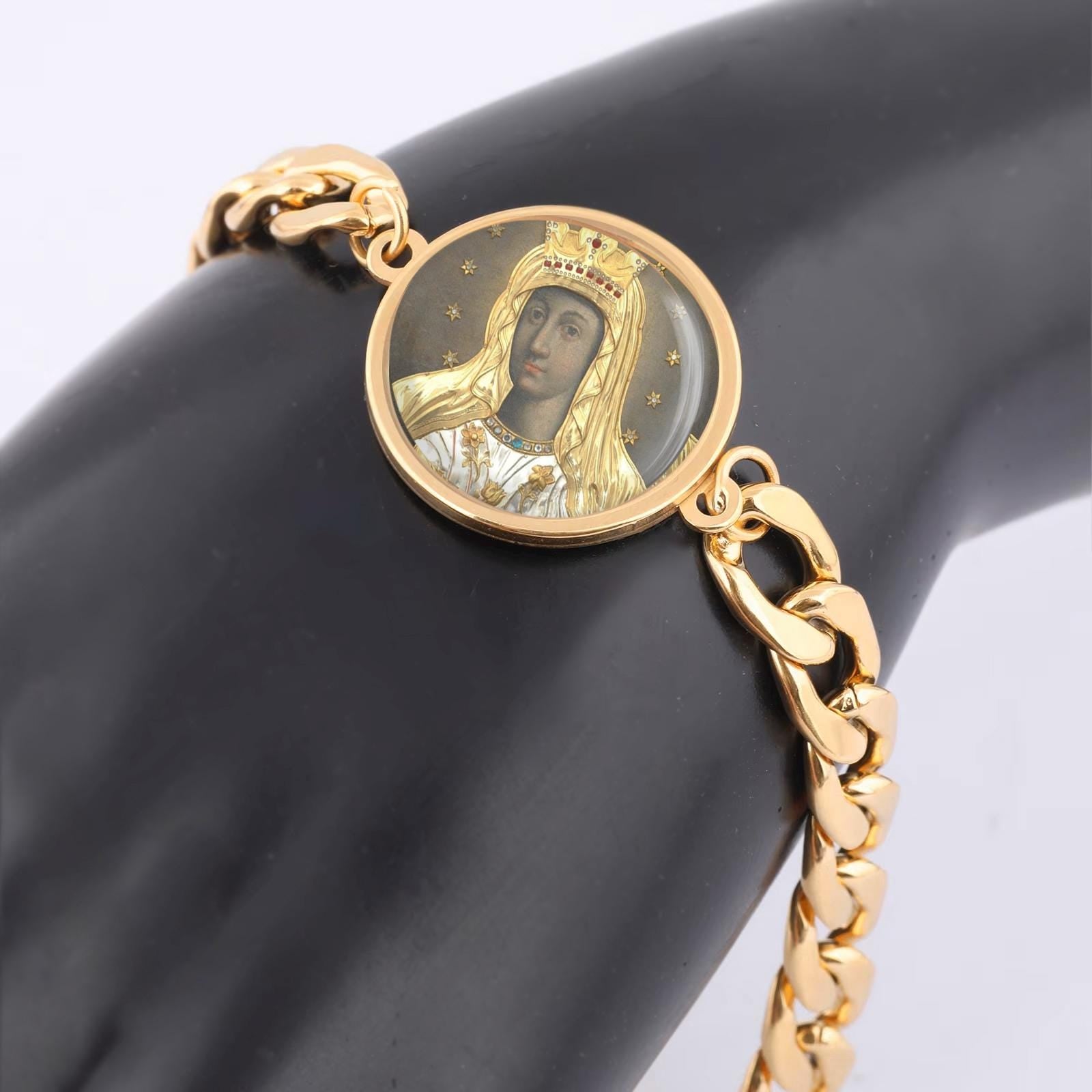 Our Lady Comforter Of The Afflicted Curb Bracelet Gold or Silver tone Religious Jewelry Simple Chain
