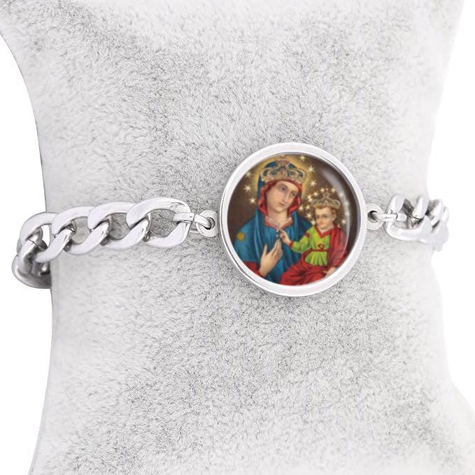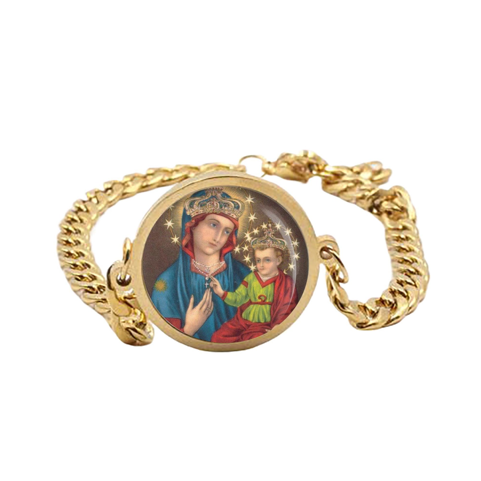 Our Lady Consolation Curb Bracelet Gold or Silver tone Religious Jewelry Simple Chain