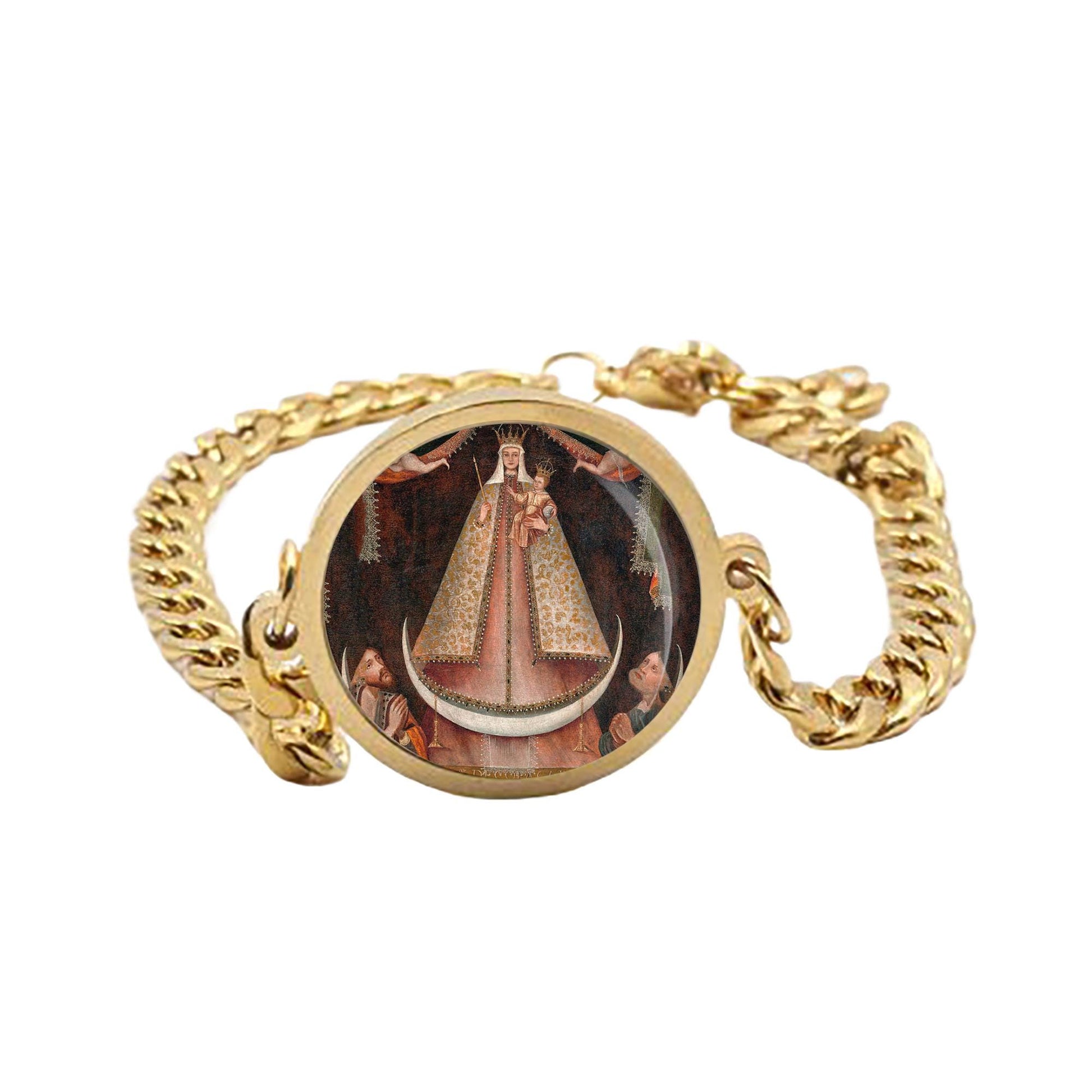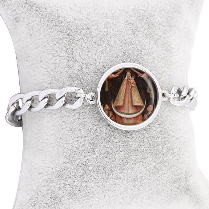 Our Lady Copacabana Curb Bracelet Gold or Silver tone Religious Jewelry Simple Chain