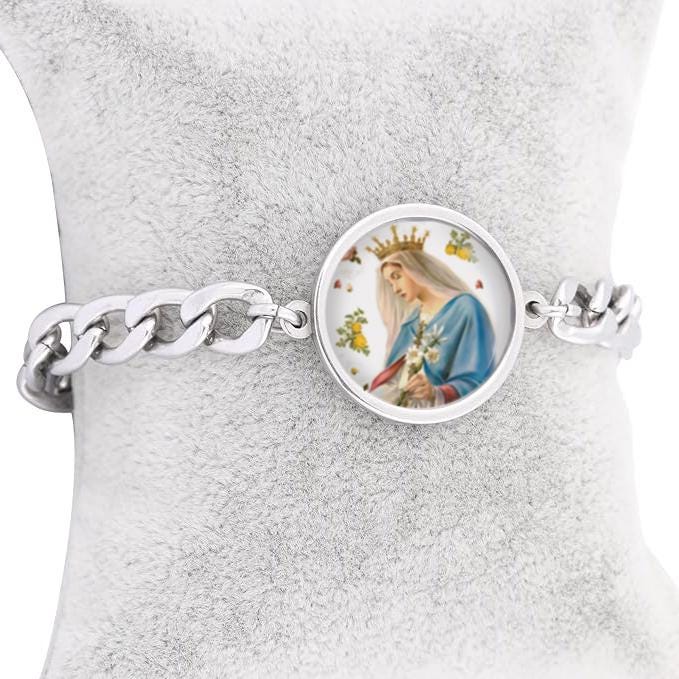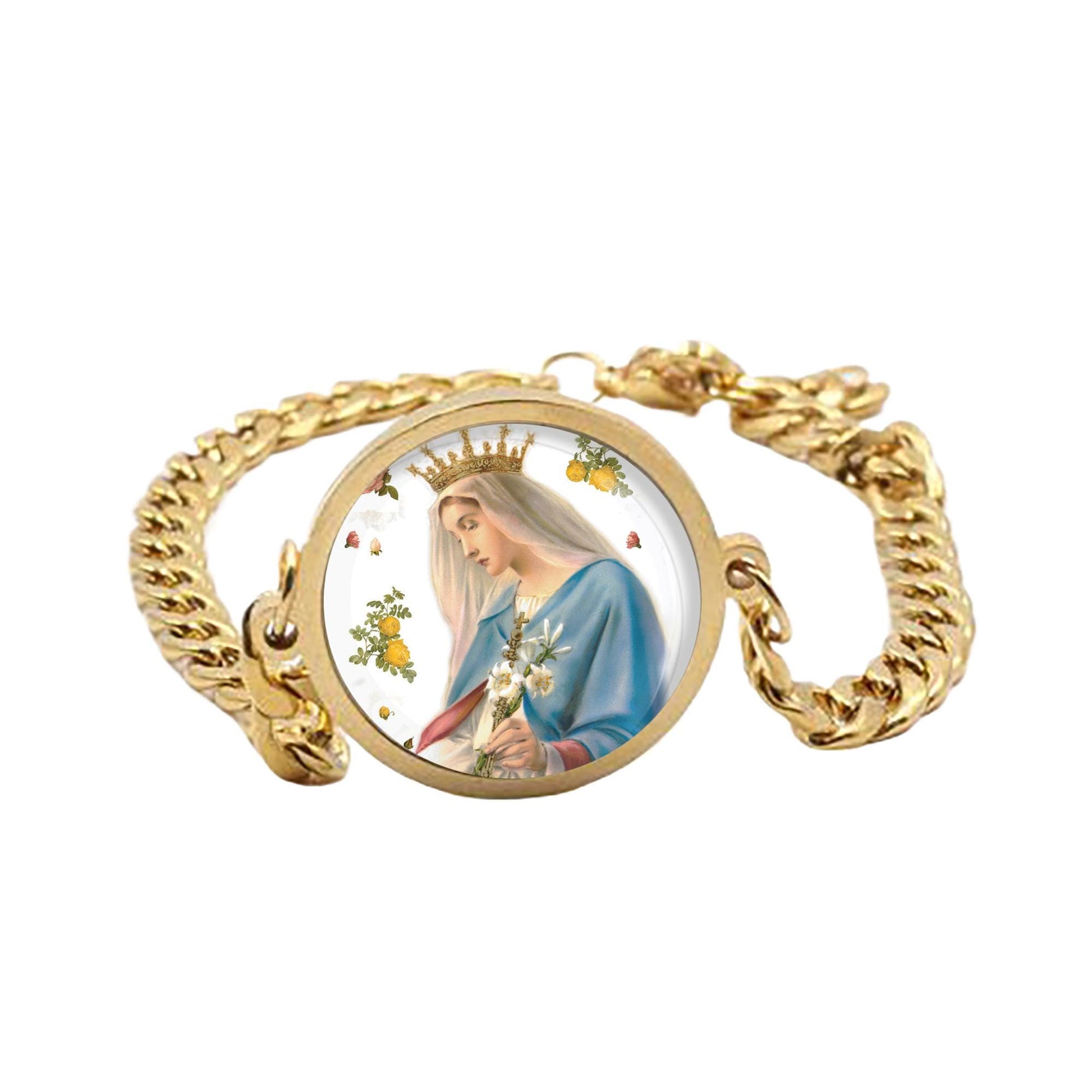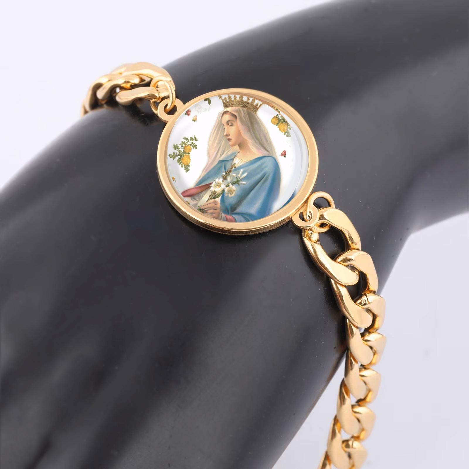 Our Lady Crown Regina Curb Bracelet Gold or Silver tone Religious Jewelry Simple Chain