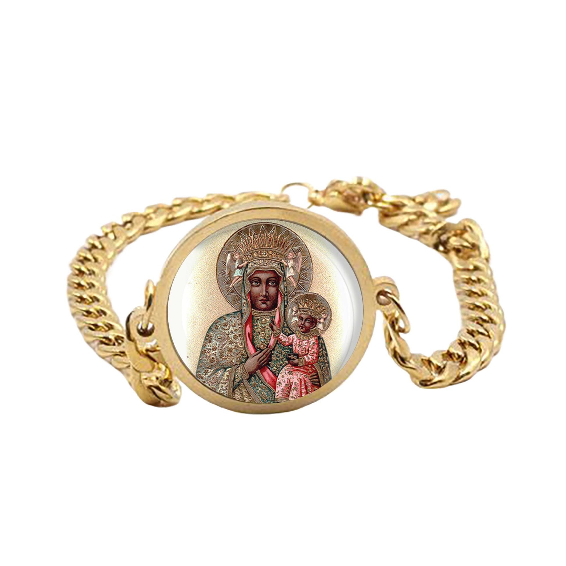 Our Lady Czestochowa Curb Bracelet Gold or Silver tone