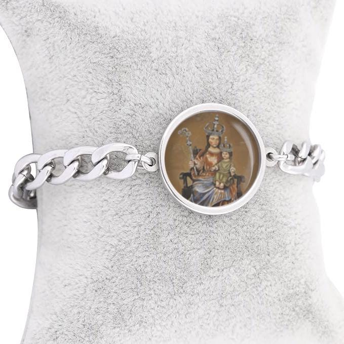 Our Lady Europe And Patroness Of Gibraltar Curb Bracelet Gold or Silver tone Religious Jewelry Simple Chain