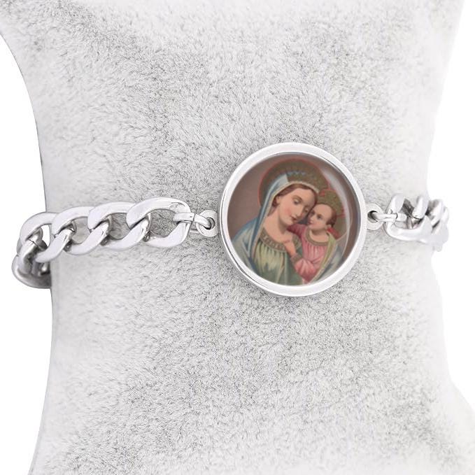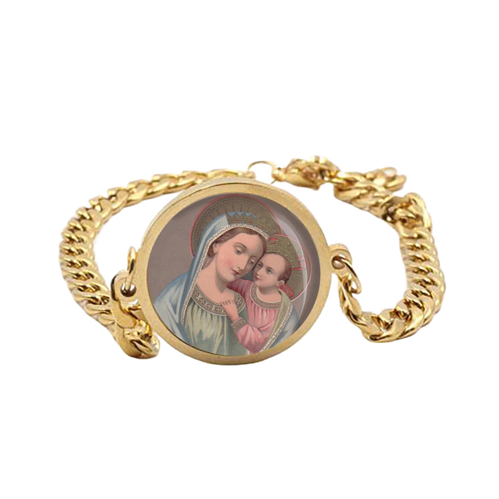 Our Lady Good Counsel Curb Bracelet Gold or Silver tone Religious Jewelry Simple Chain