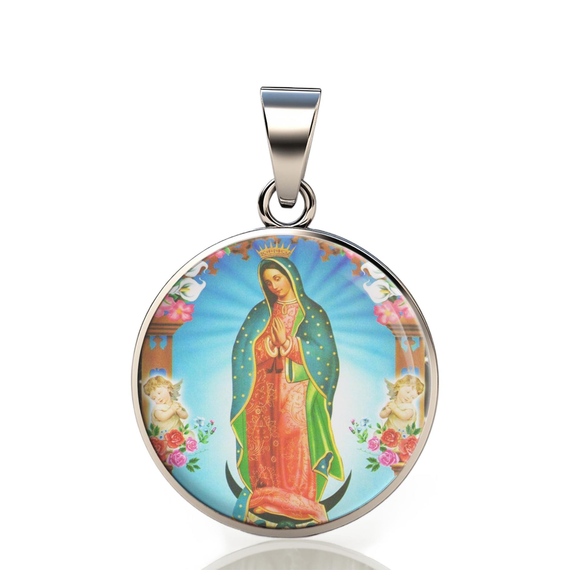 Our Lady Guadalupe 925 Sterling Silver II Round Pendant Christian Religious Medal Small 20mm