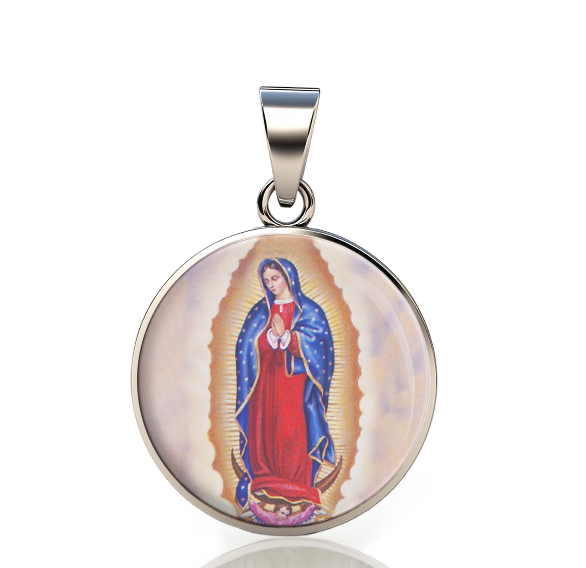Our Lady Guadalupe 925 Sterling Silver Round Pendant Christian Medal Small 20mm