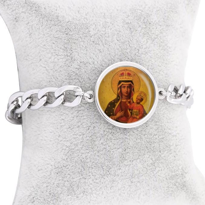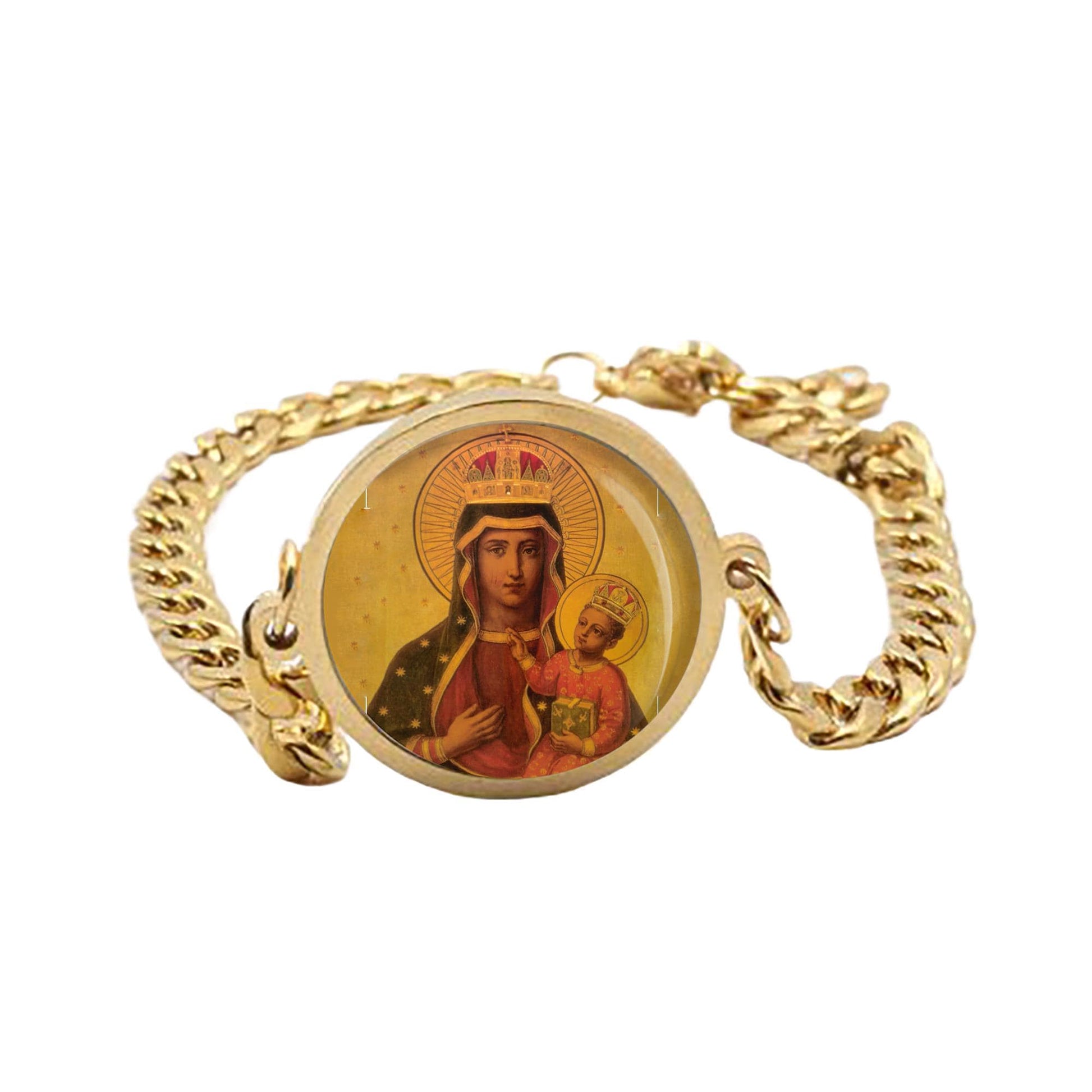 Our Lady Hungary Curb Bracelet Gold or Silver tone Religious Jewelry Simple Chain