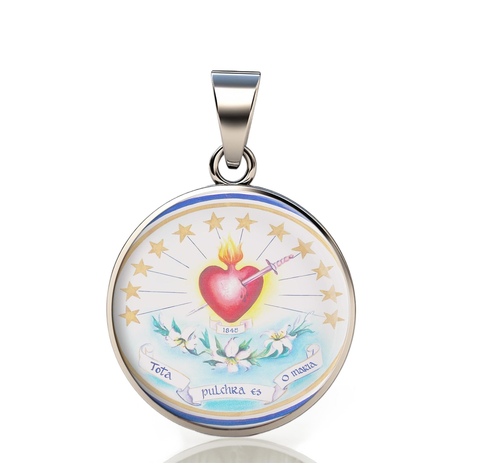 Our Lady Immaculate 925 Sterling Silver IV Round Pendant Christian Religious Medal Small 20mm