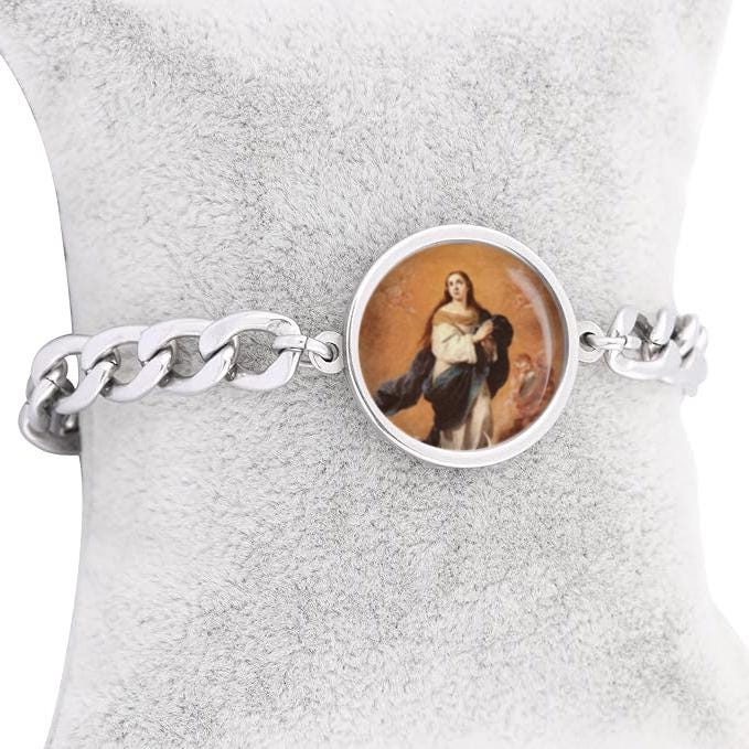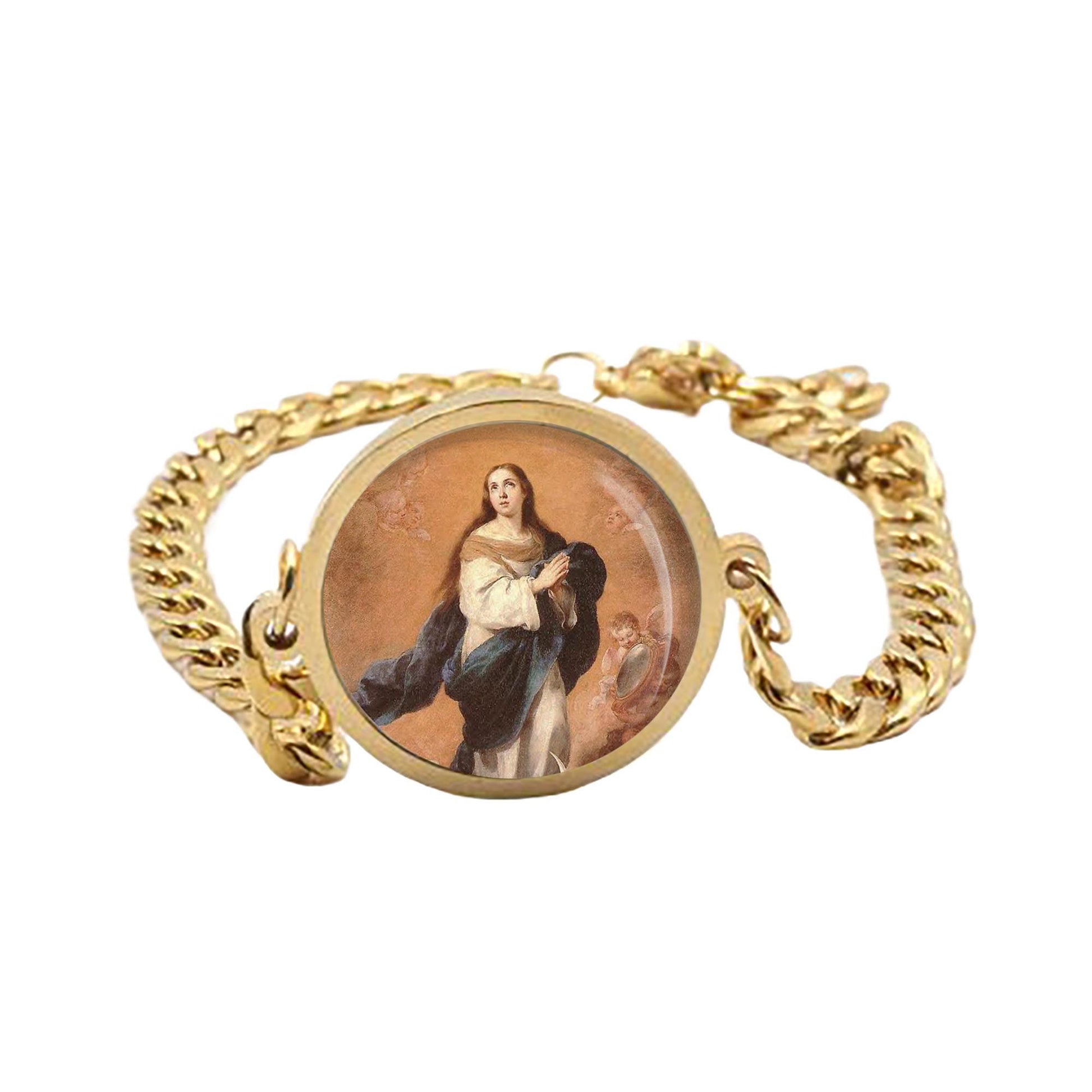 Our Lady Immaculate Conception Curb Bracelet Gold or Silver tone Religious Jewelry Simple Chain
