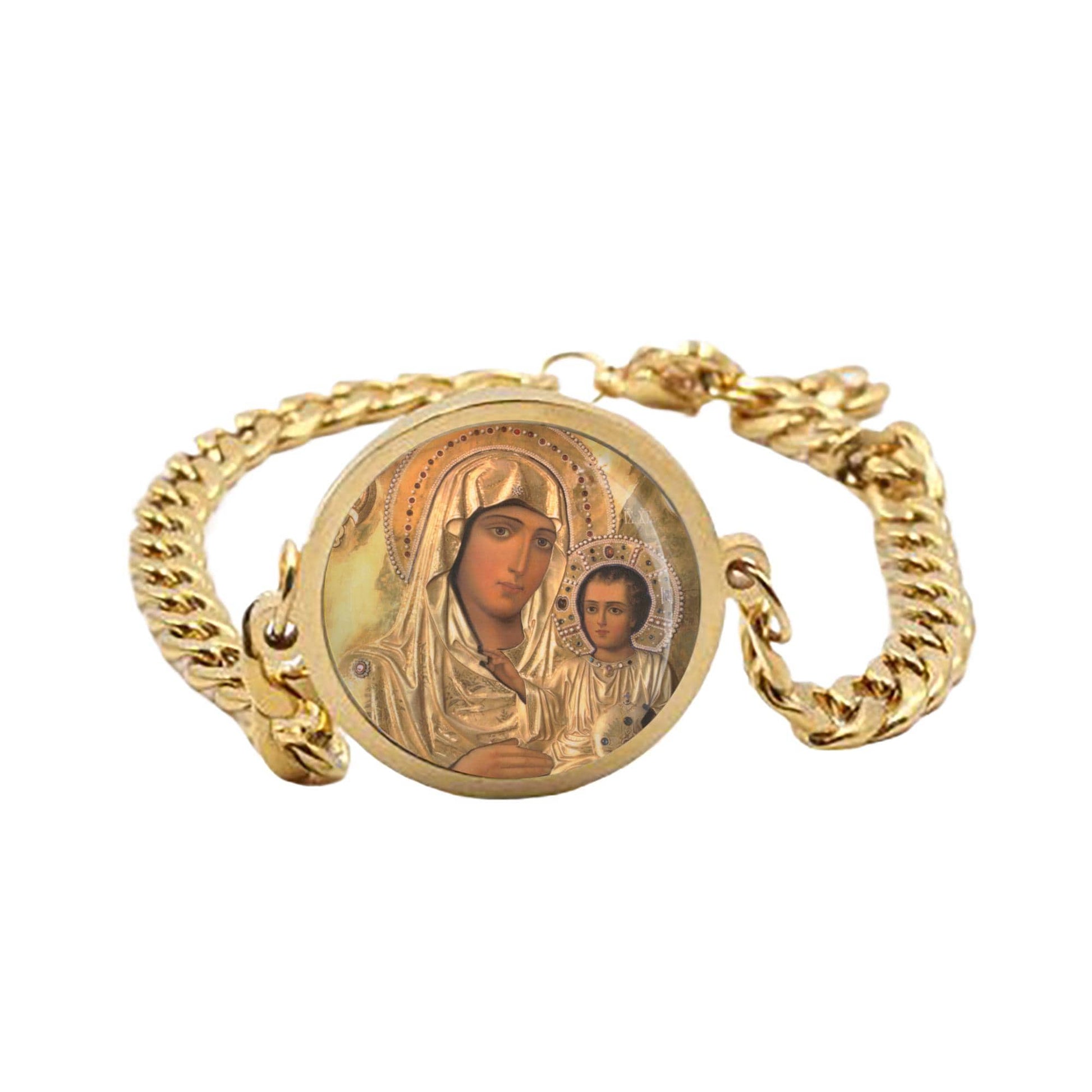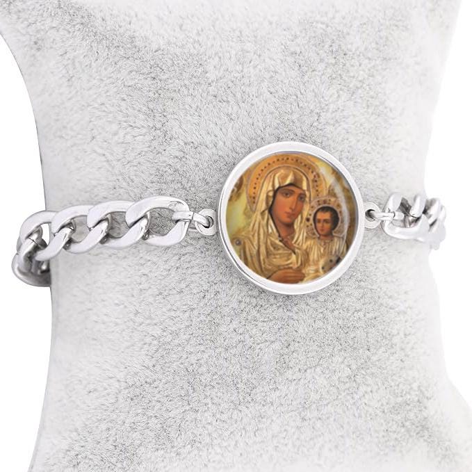 Our Lady Jerusalem Curb Bracelet Gold or Silver tone Religious Jewelry Simple Chain