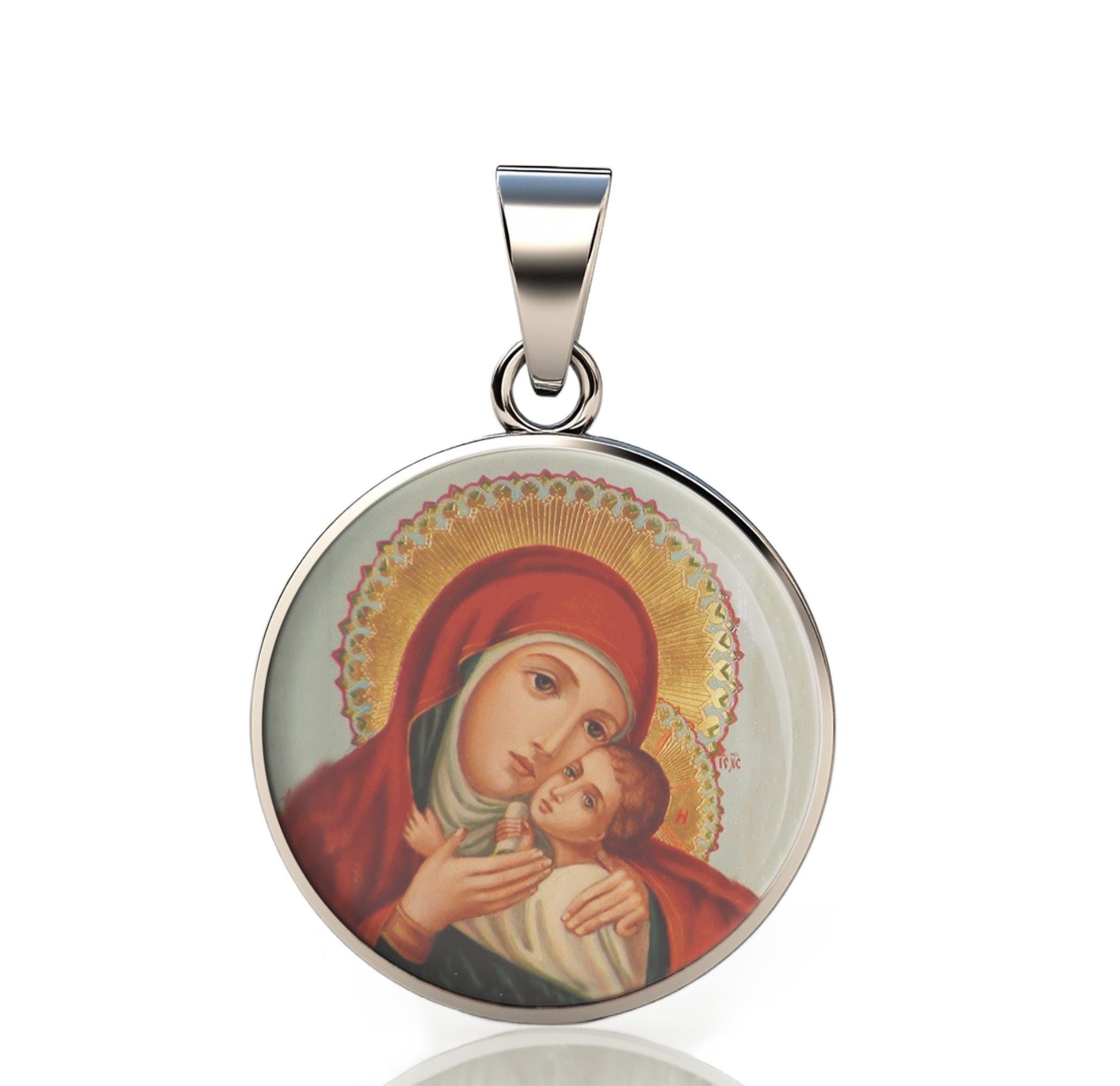Our Lady Korsun 925 Sterling Silver Round Pendant Christian Religious Medal Small 20mm
