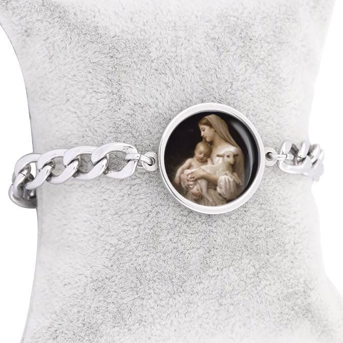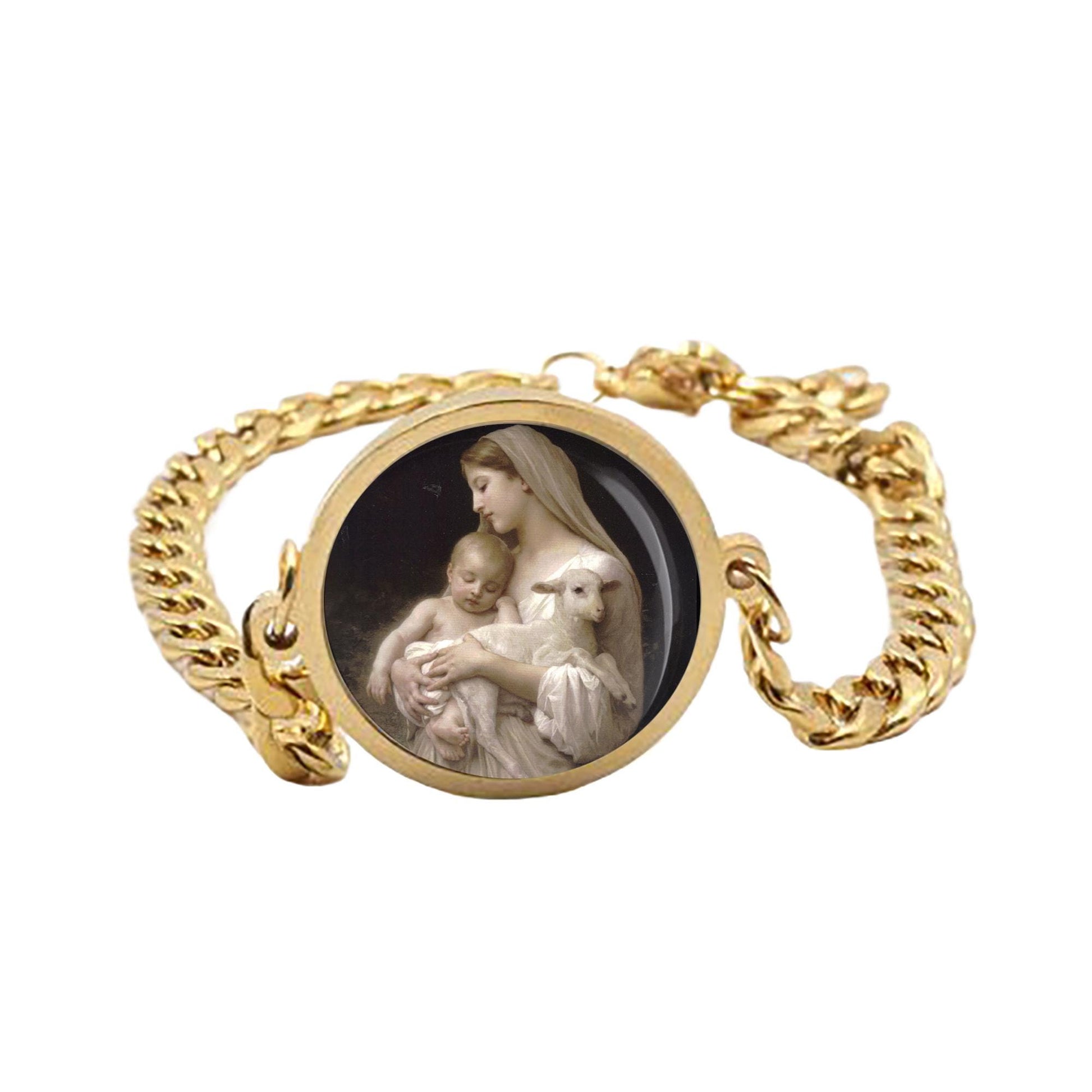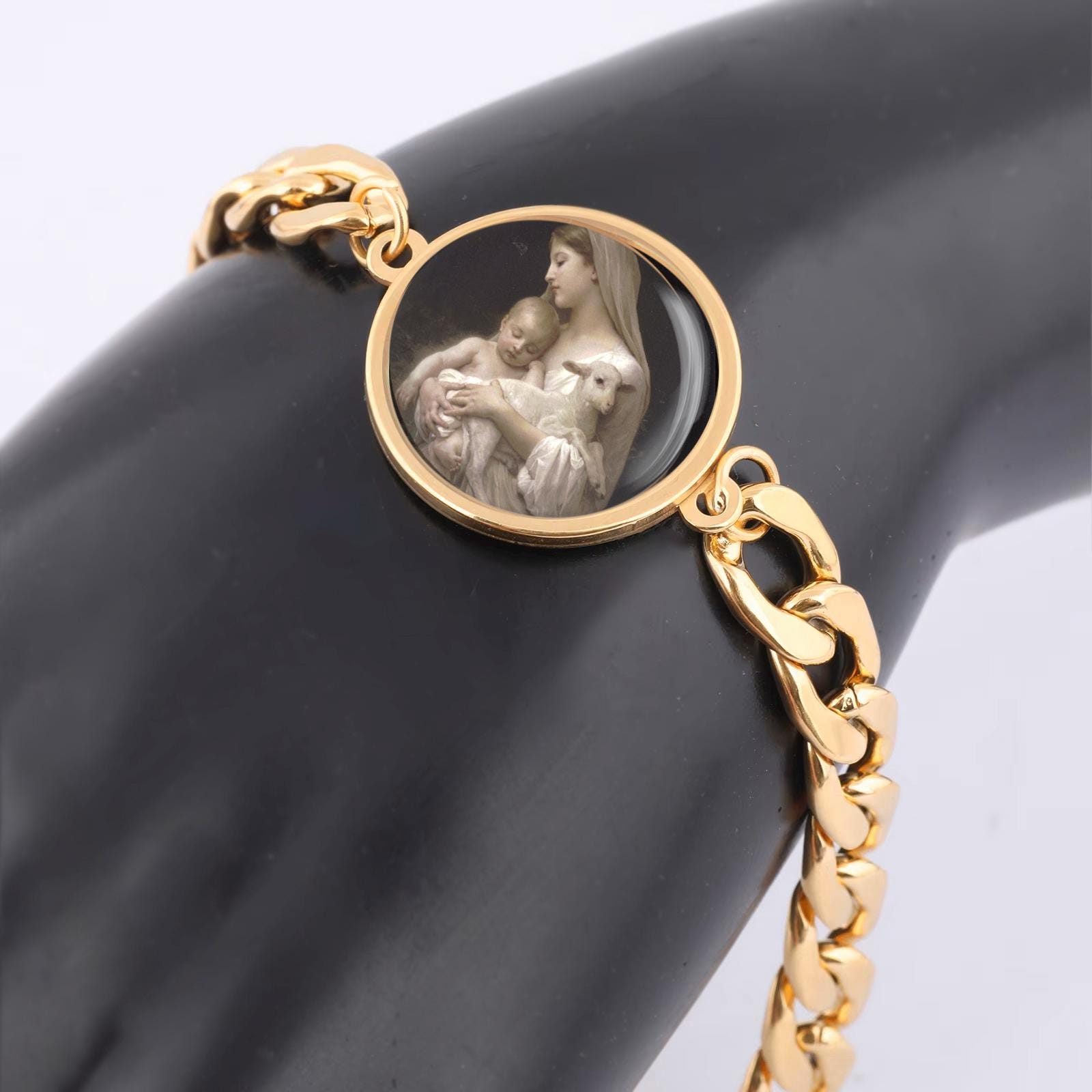 Our Lady Lamb Mary Baby Curb Bracelet Gold or Silver tone Religious Jewelry Simple Chain