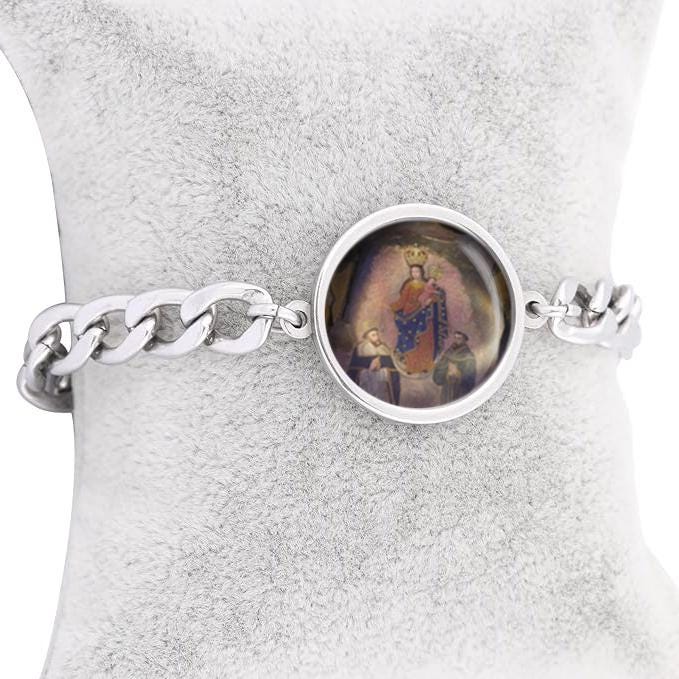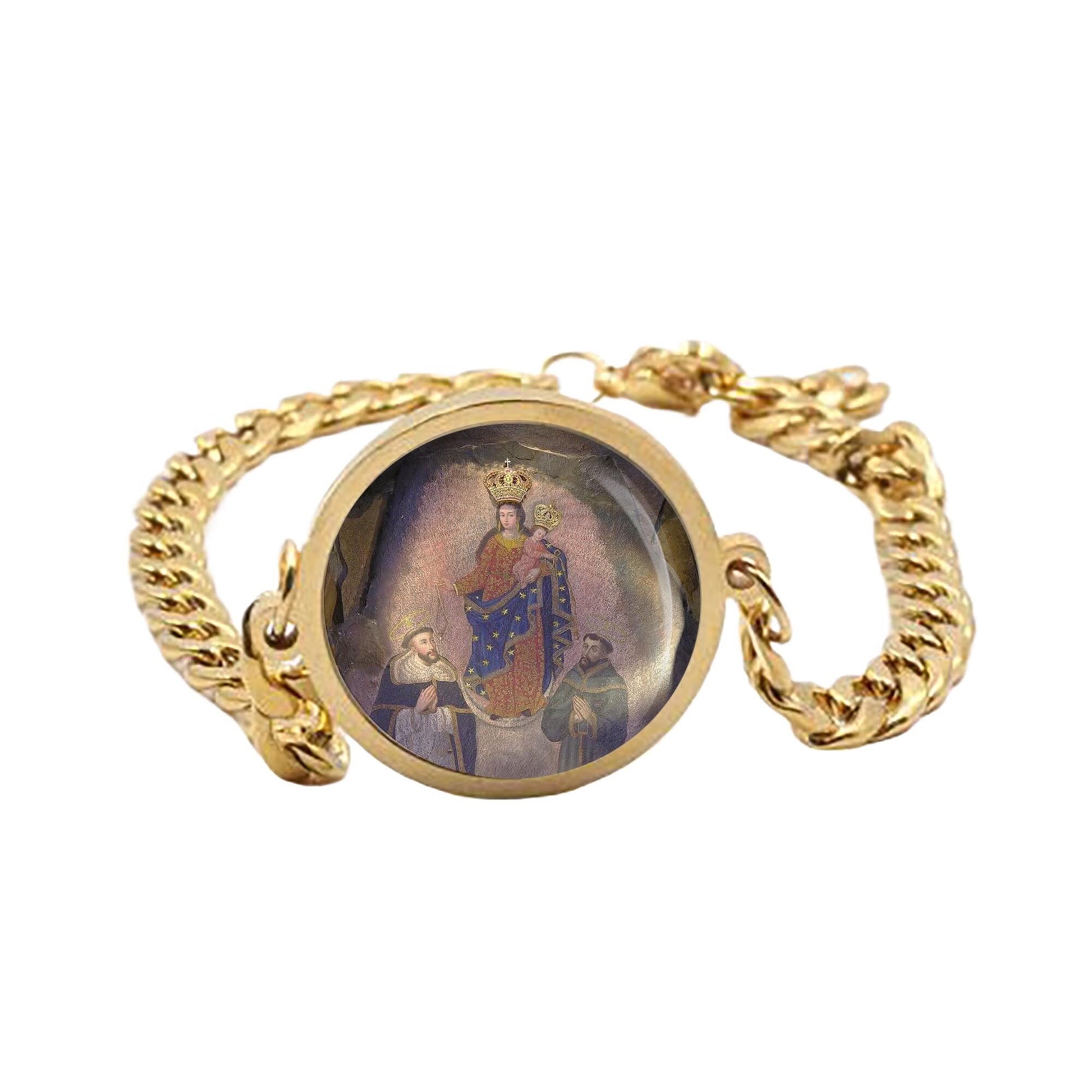 Our Lady Las Lajas Curb Bracelet Gold or Silver tone Religious Jewelry Simple Chain