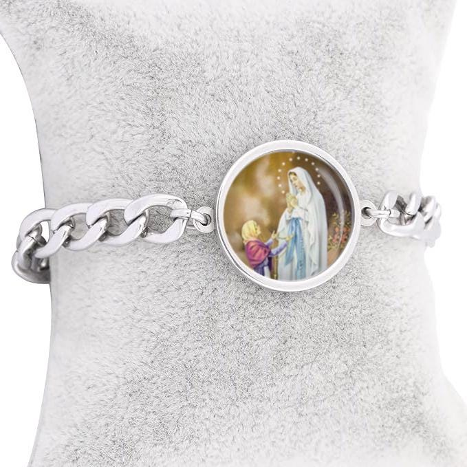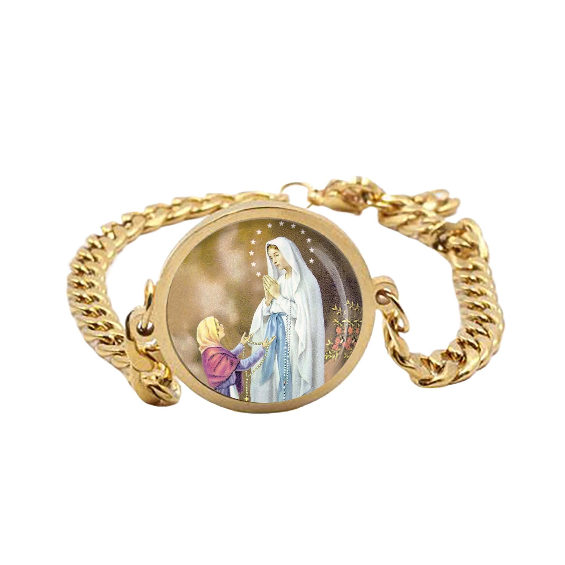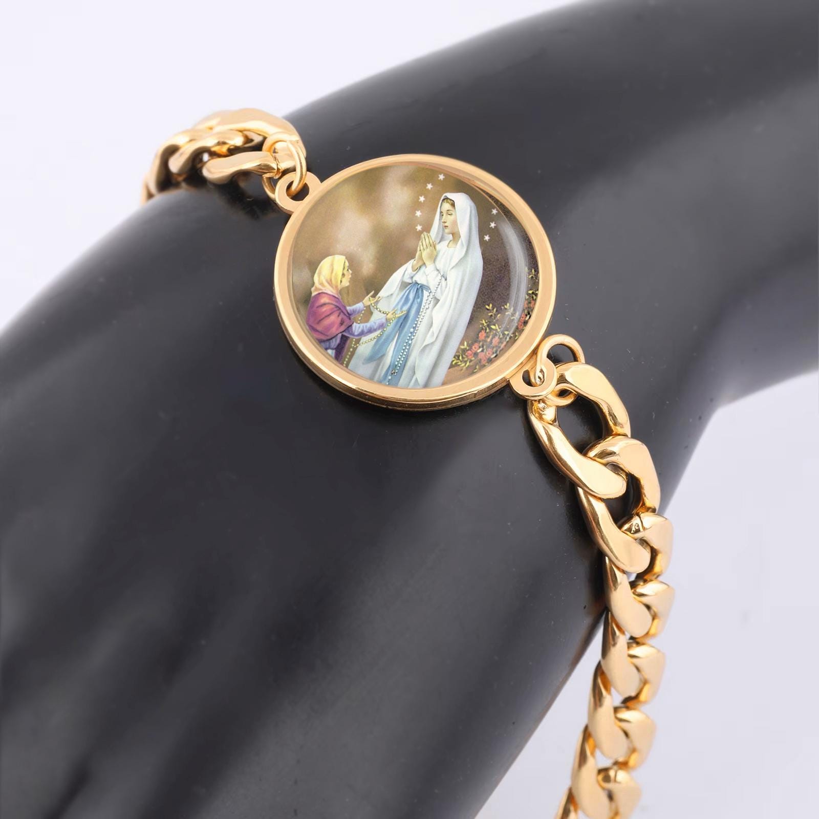 Our Lady Lourdes Curb Bracelet Gold or Silver tone Religious Jewelry Simple Chain