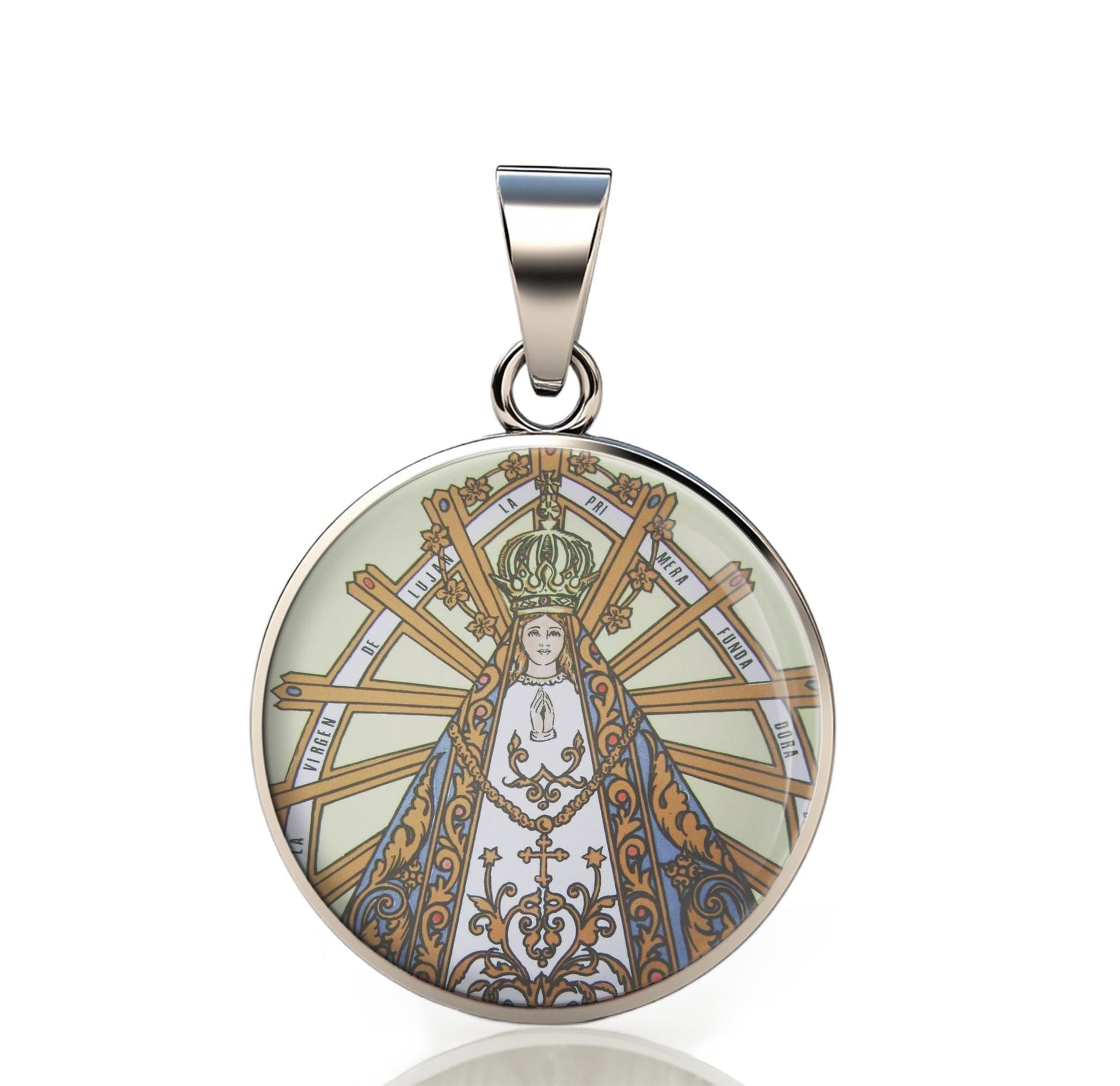 Our Lady Lujan 925 Sterling Silver Round Pendant Christian Religious Medal Small 20mm