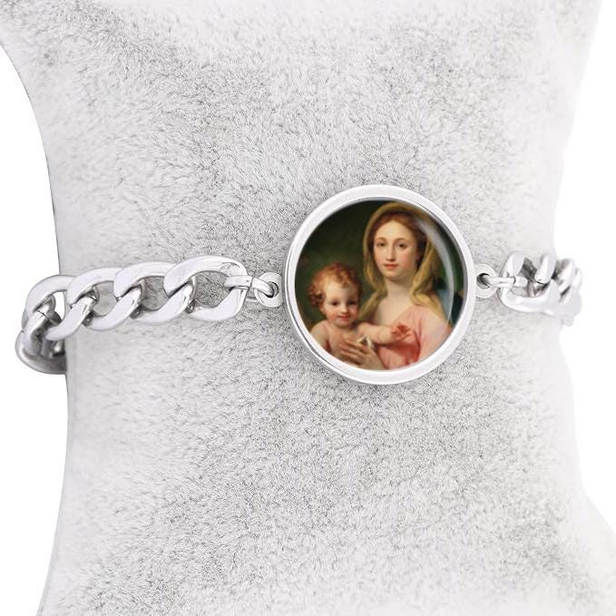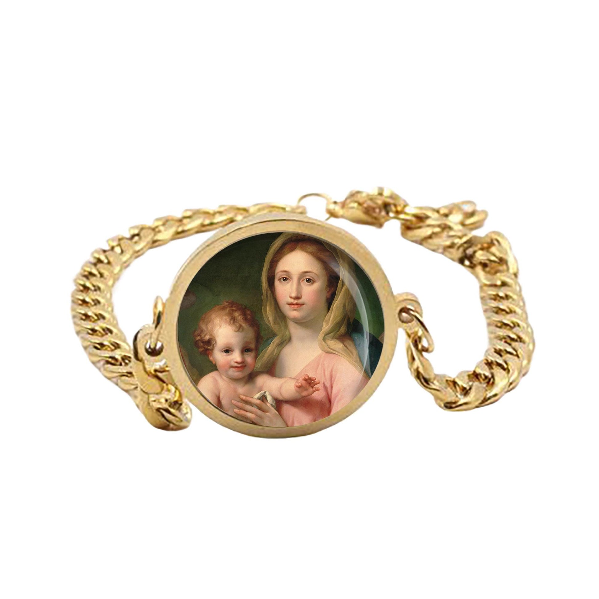 Our Lady Madonna And Child Anton Raphael Mengs Curb Bracelet Gold or Silver tone Religious Jewelry Simple Chain