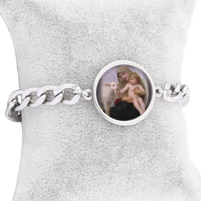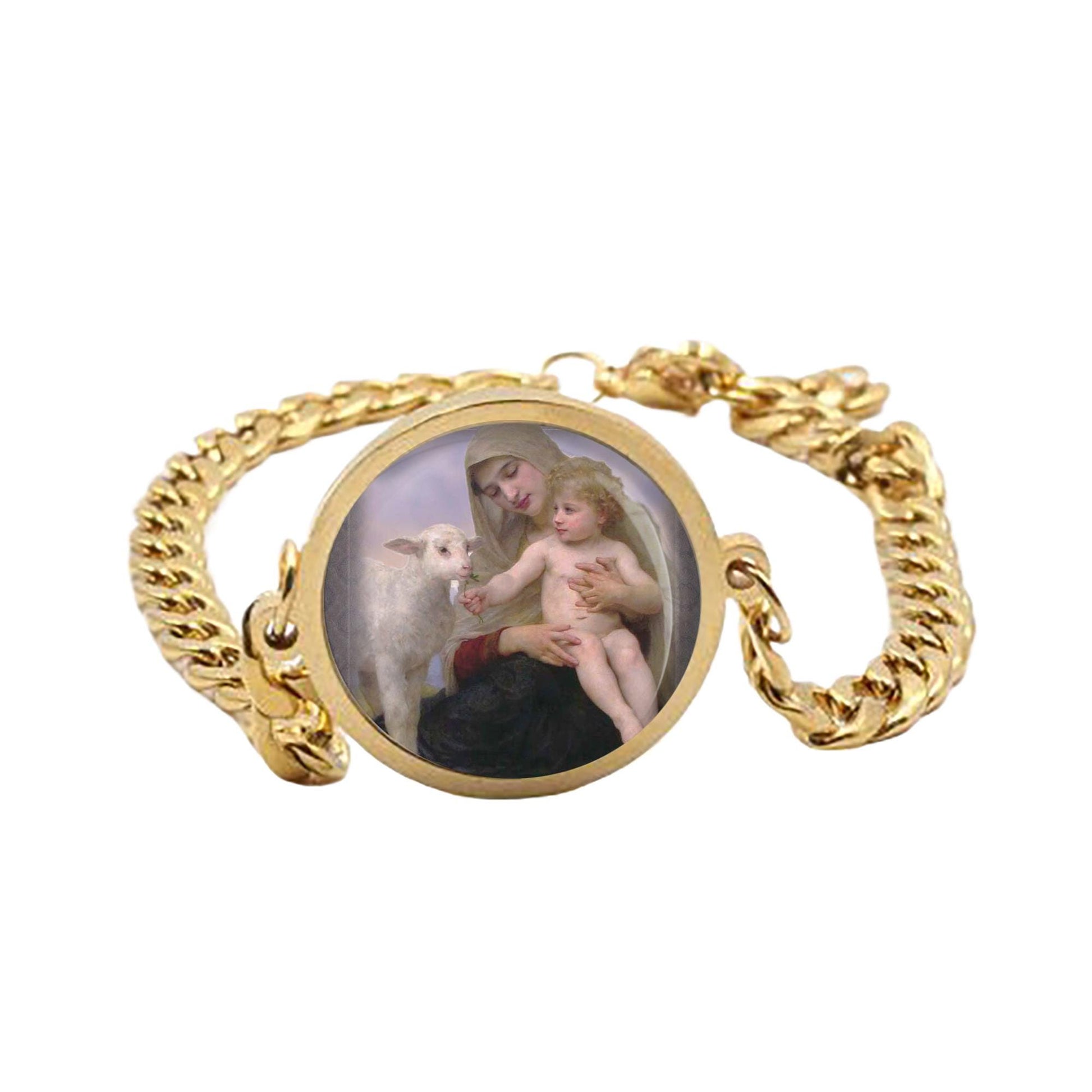 Our Lady Madonna And Child With Lamb Curb Bracelet Gold or Silver tone Religious Jewelry Simple Chain