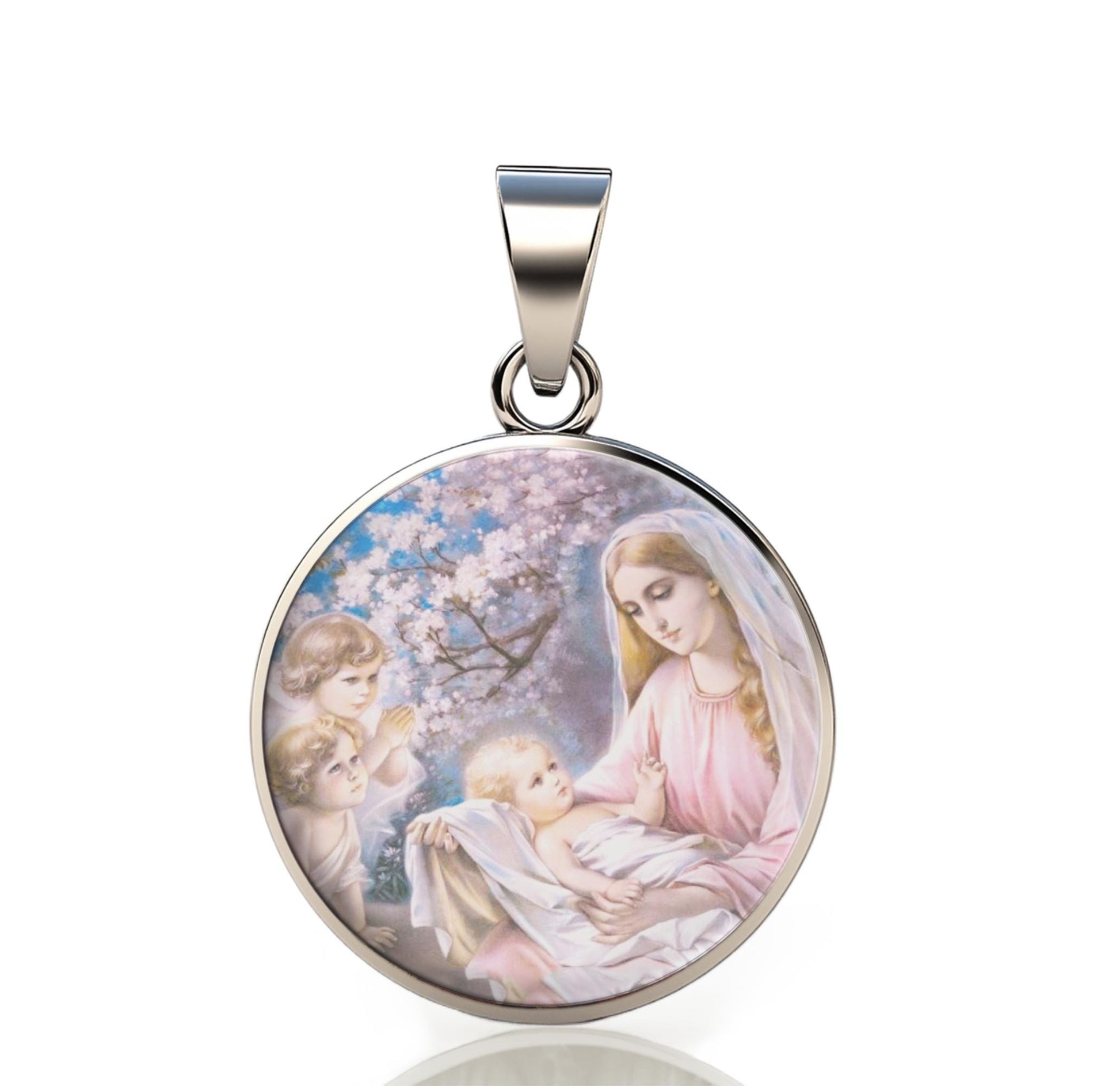 Our Lady Mary 925 Sterling Silver Round Pendant I Christian Religious Medal Small 20mm