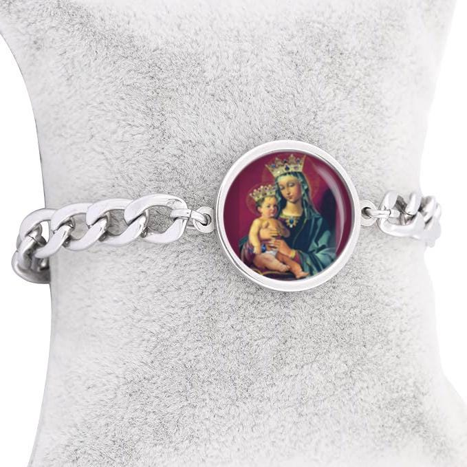 Our Lady Mary And Baby Curb Bracelet Gold or Silver tone Religious Jewelry Simple Chain