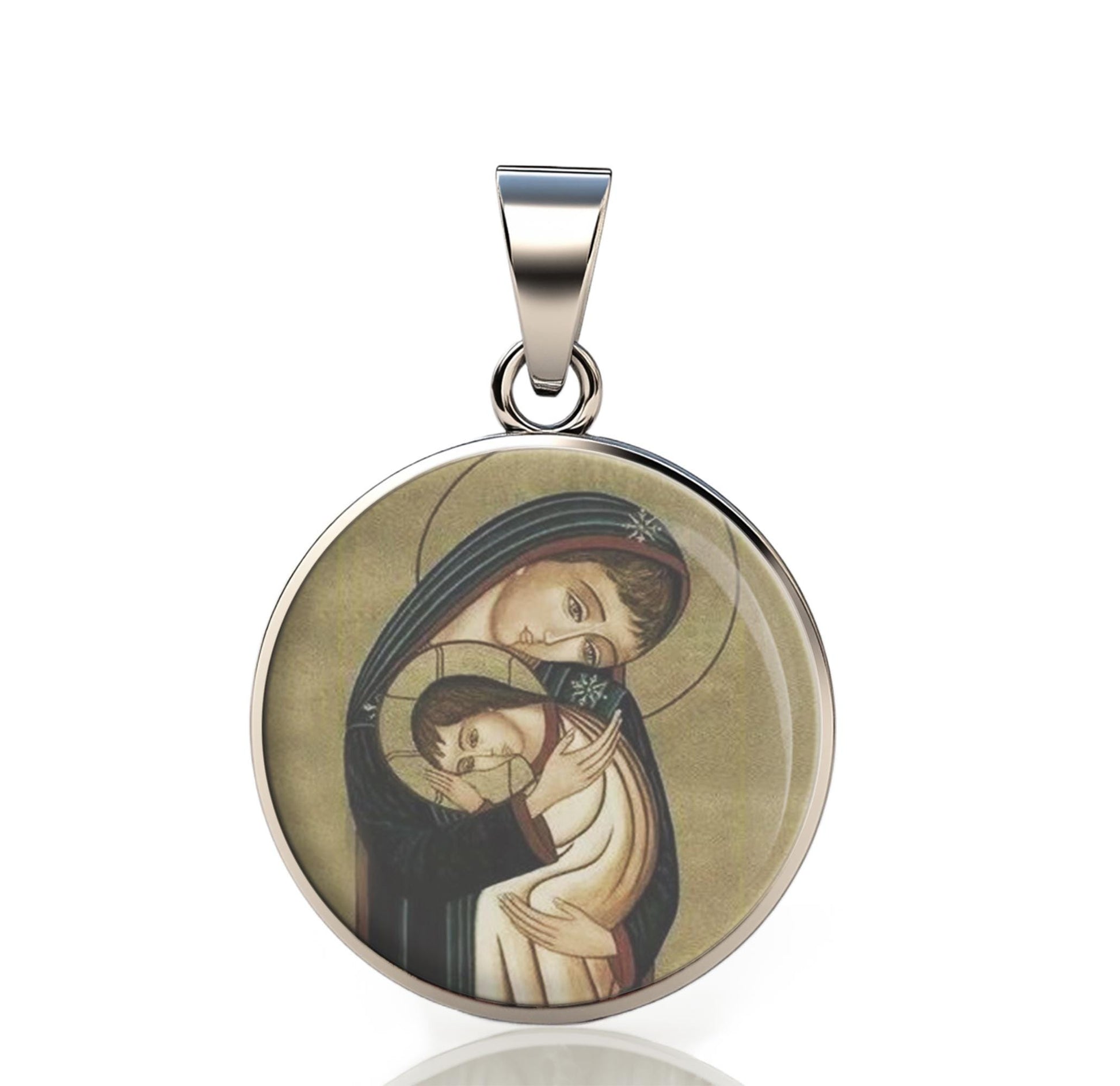 Our Lady Mary And Baby Jesus 925 Sterling Silver Round Pendant Christian Religious Medal Small 20mm
