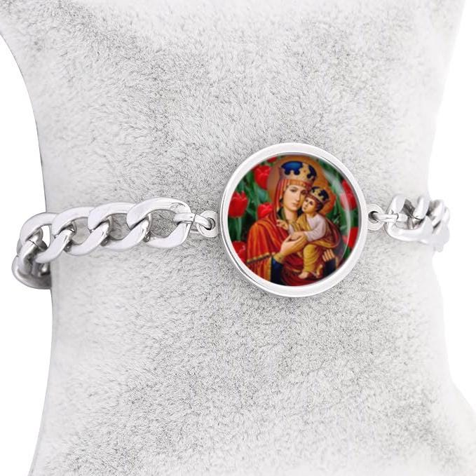 Our Lady Mary and Baby Jesus Catholic Curb Bracelet