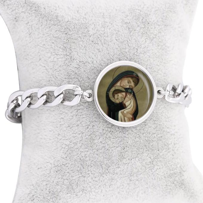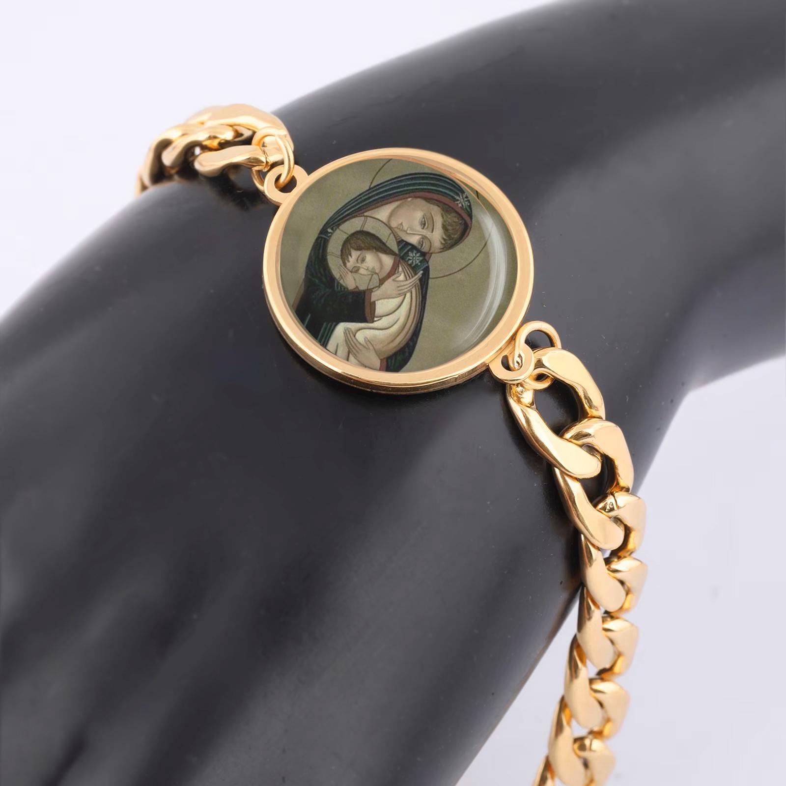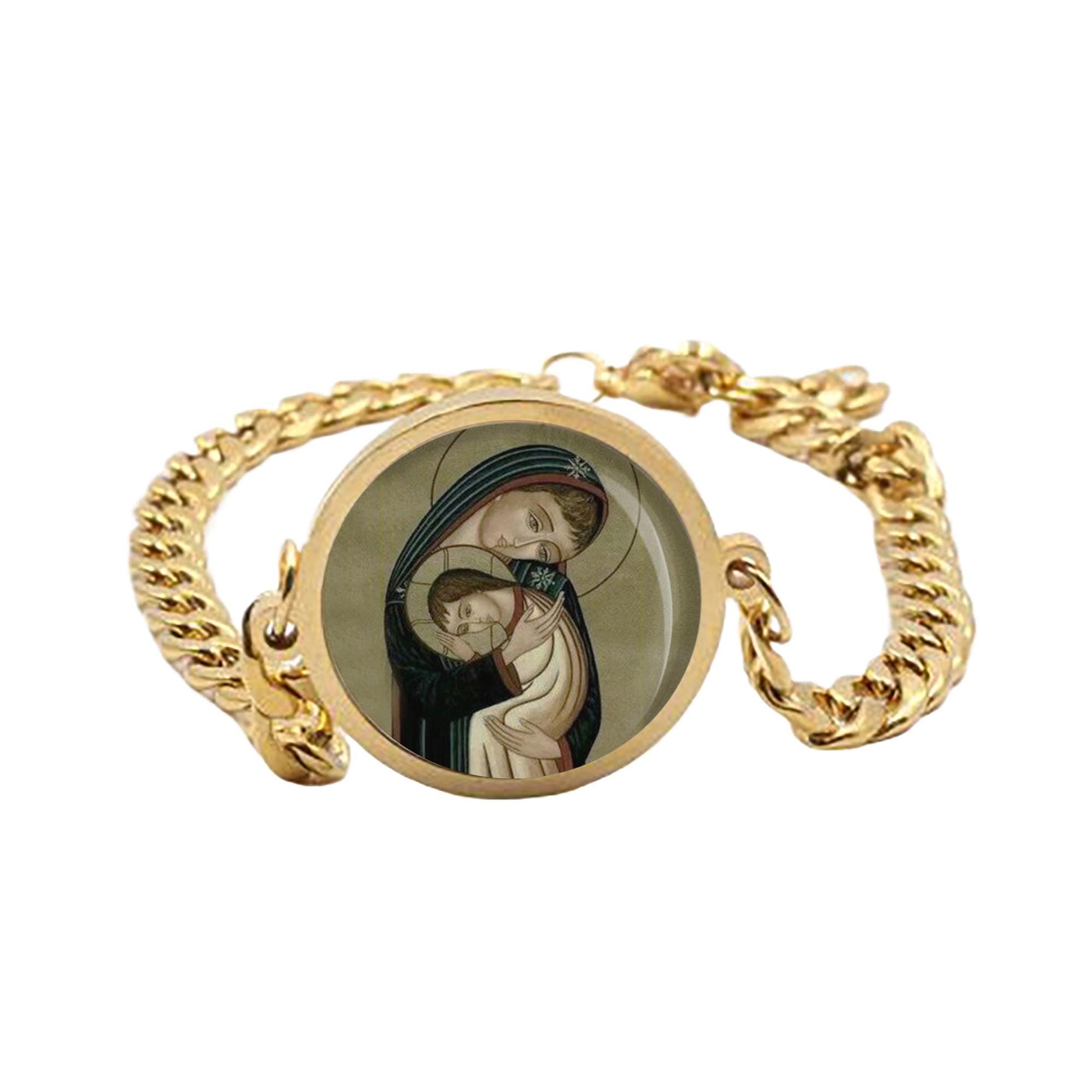Our Lady Mary And Baby Jesus Curb Bracelet Gold or Silver tone Religious Jewelry Simple Chain
