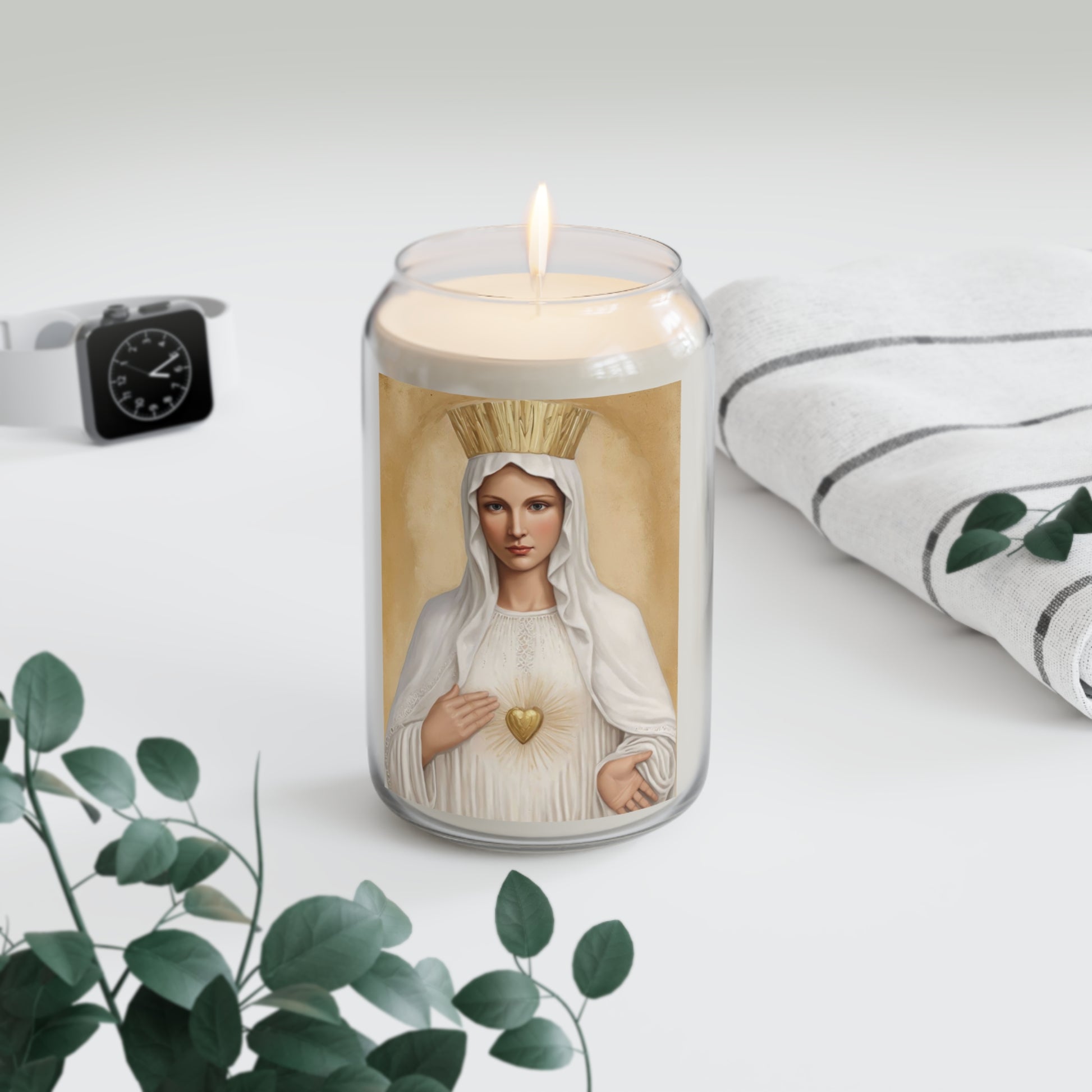 Our Lady Mary Beauraing Catholic Serenity Scented Candle, 13.75oz | Relaxation Gift, Home Decor, Calm Atmosphere, Religious Decor