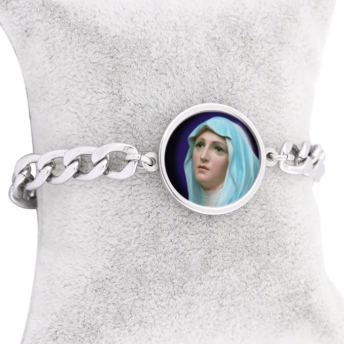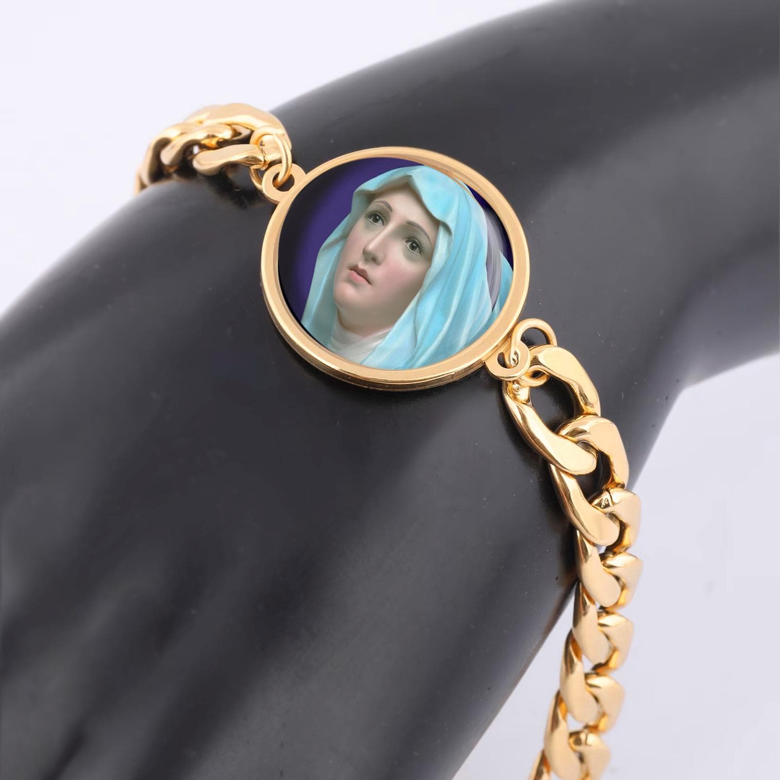 Our Lady Mary Curb Bracelet In Gold or Silver tone Religious Jewelry
