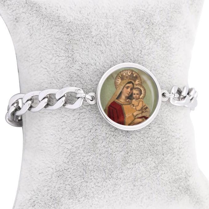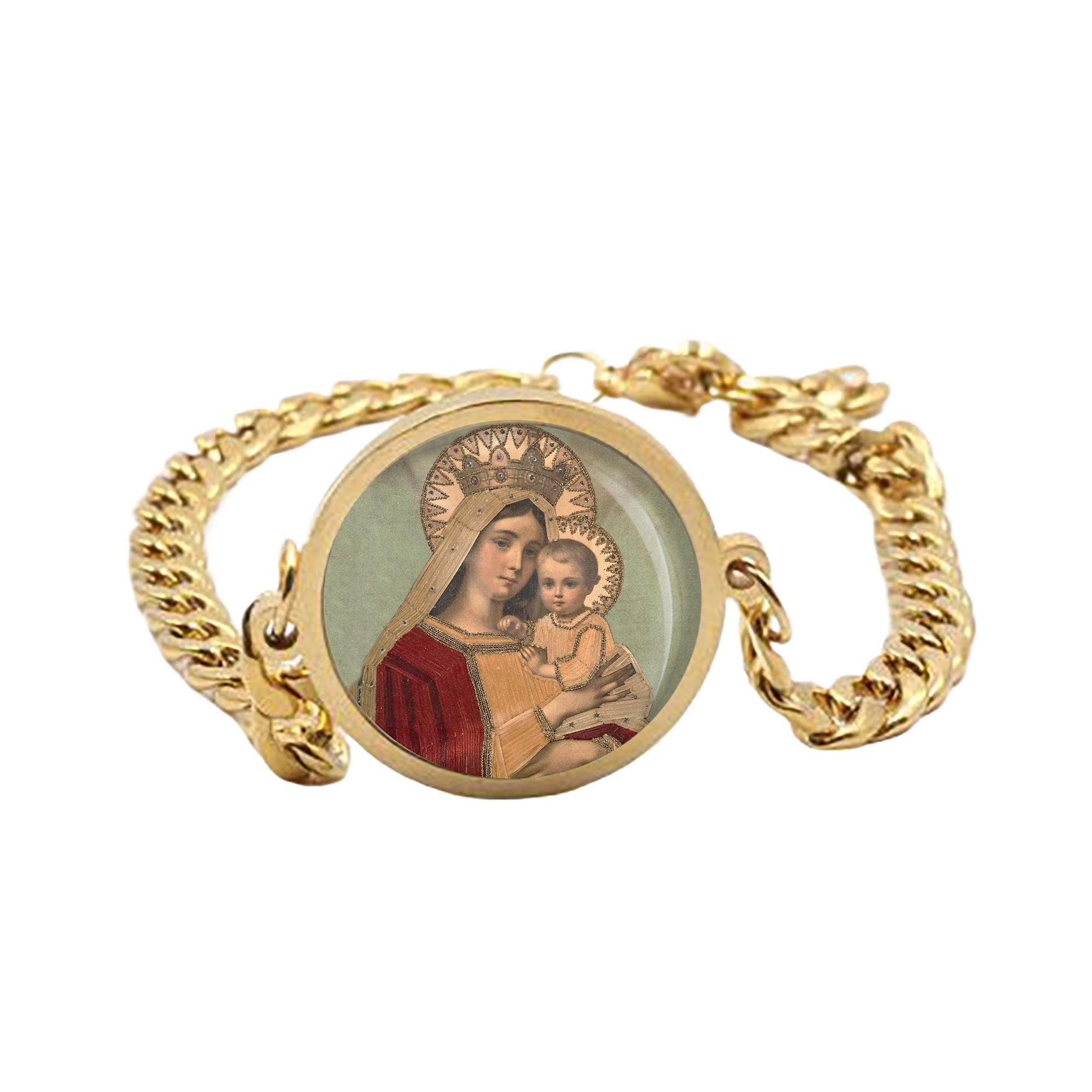 Our Lady Mary Madonna Curb Bracelet Gold or Silver tone Religious Jewelry Simple Chain
