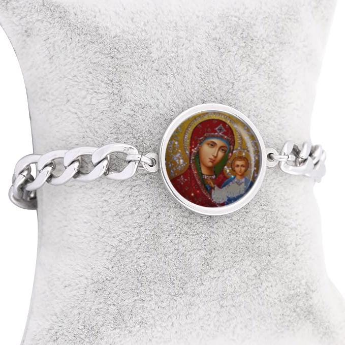 Our Lady Mary Theotokos In Red Curb Bracelet Gold or Silver tone Religious Jewelry Simple Chain