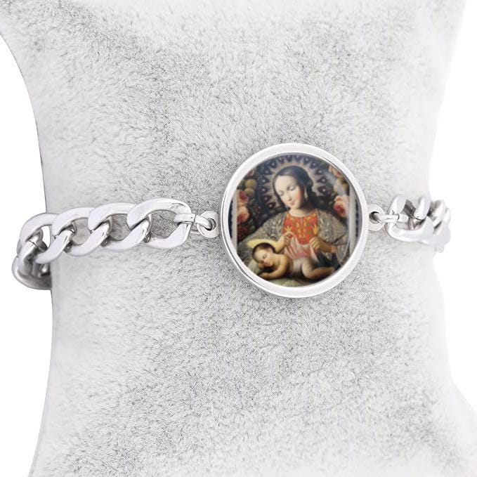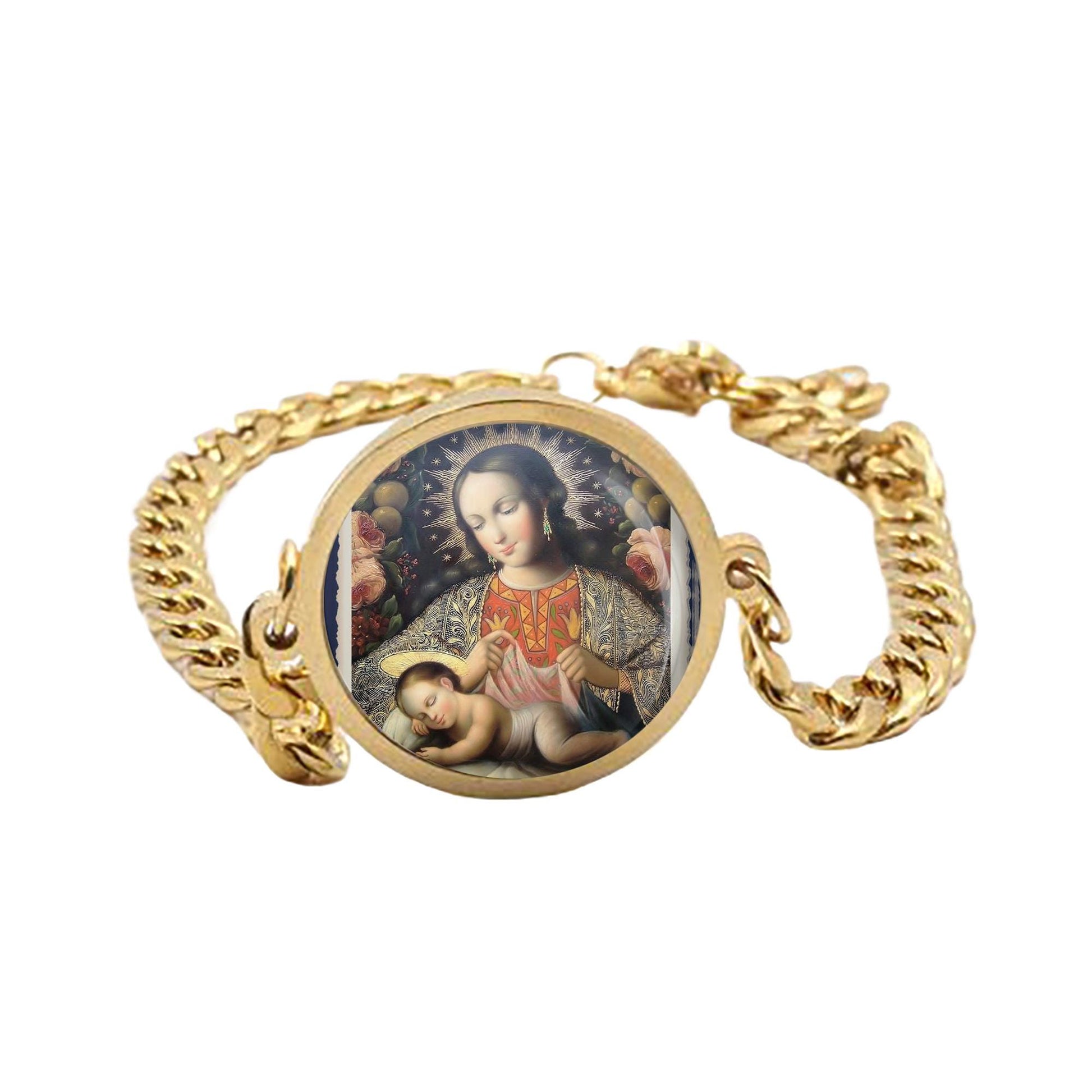 Our Lady Mary Veil Jesus Curb Bracelet Gold or Silver tone Religious Jewelry Simple Chain