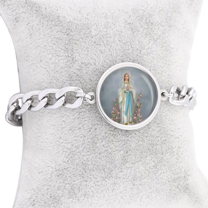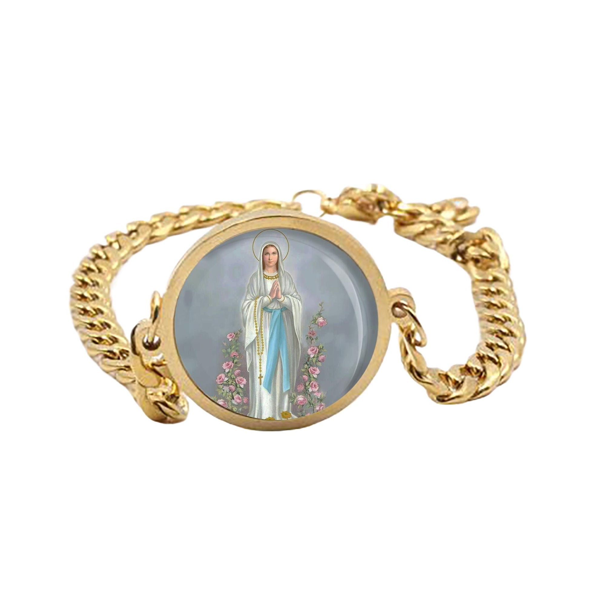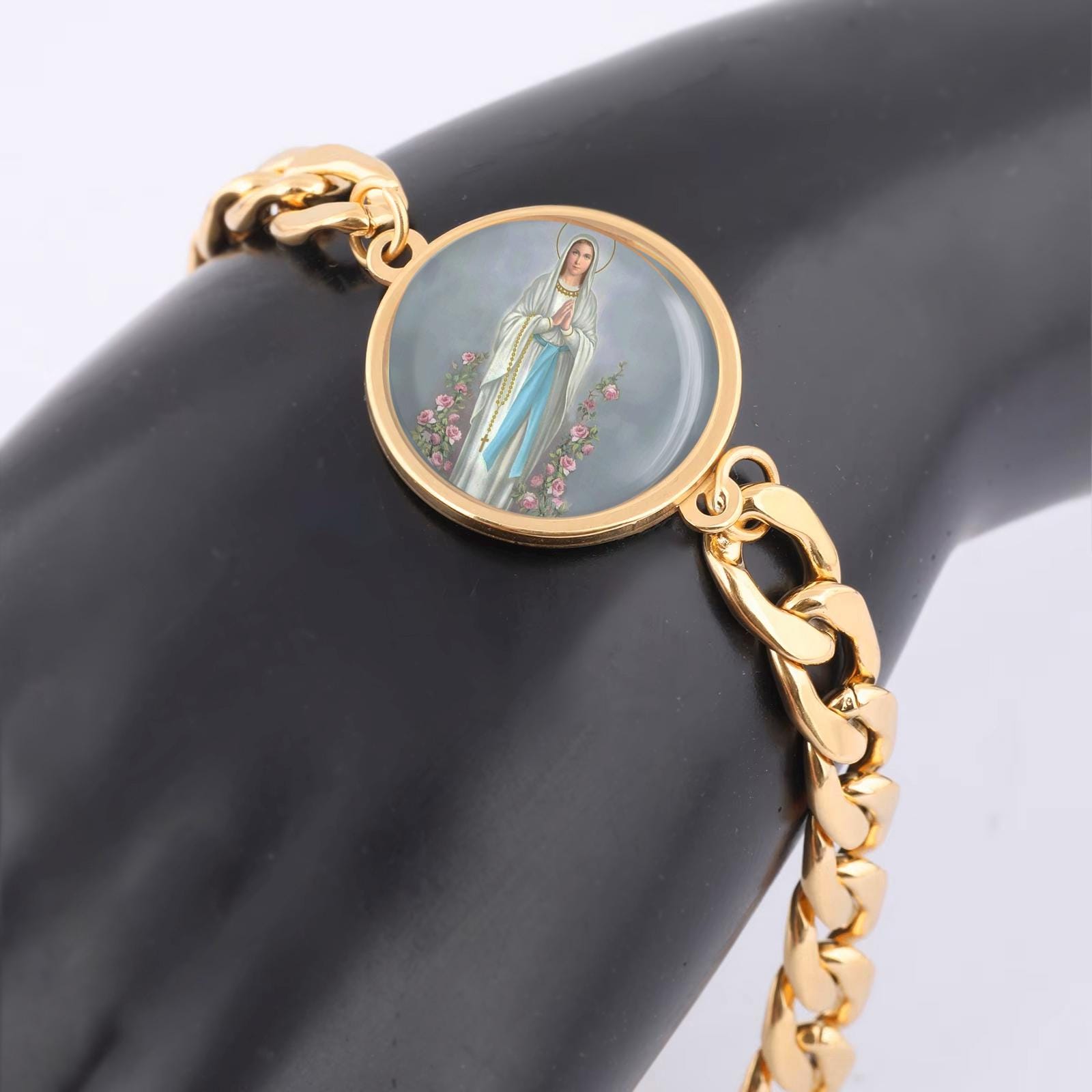 Our Lady Mary W Rosary Curb Bracelet Gold or Silver tone Religious Jewelry Simple Chain