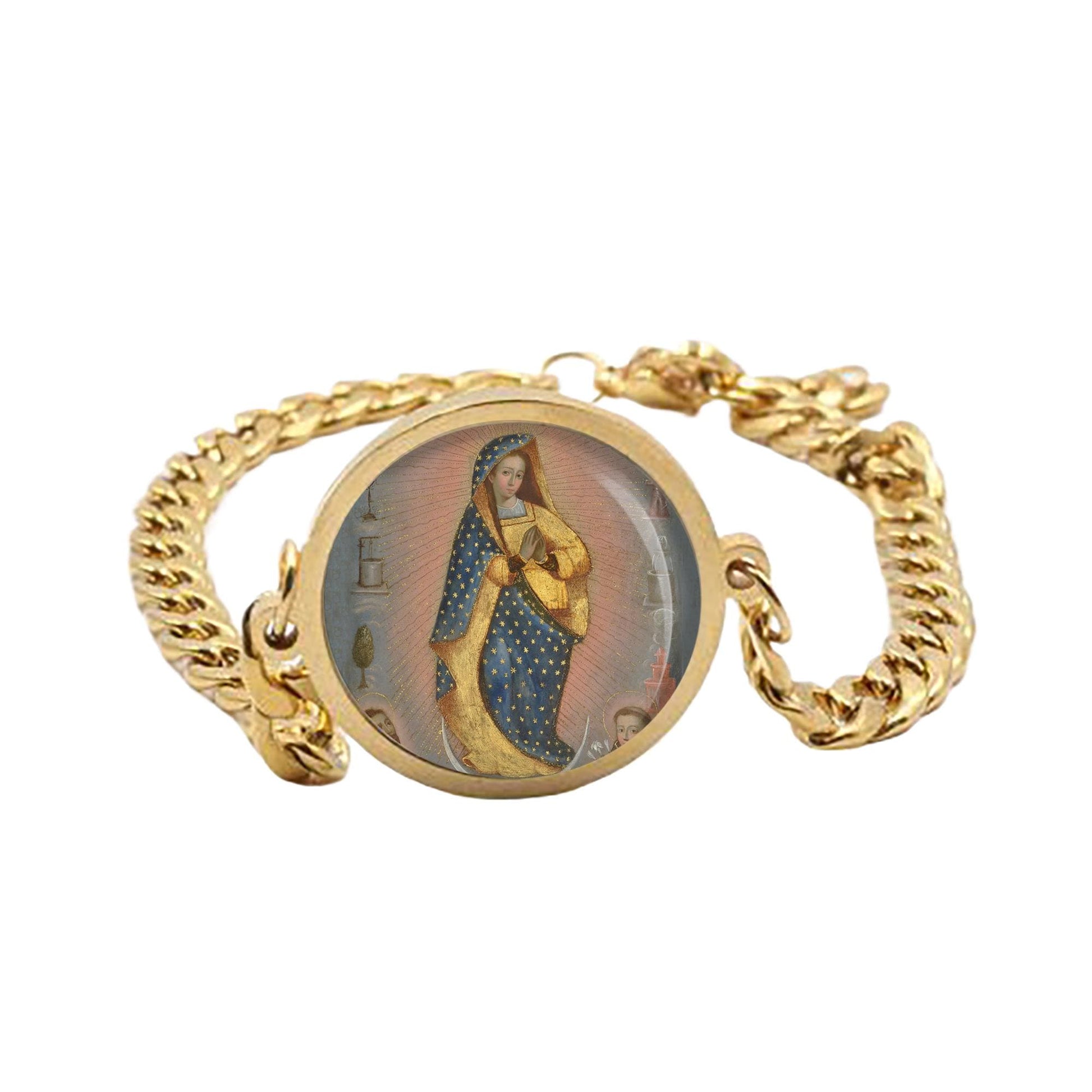 Our Lady Miracles Curb Bracelet Gold or Silver tone Religious Jewelry Simple Chain