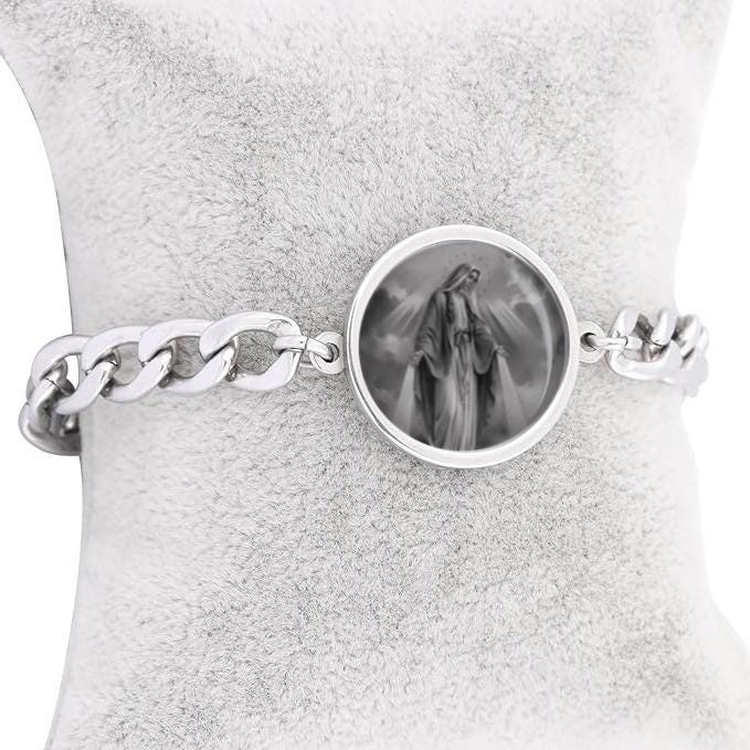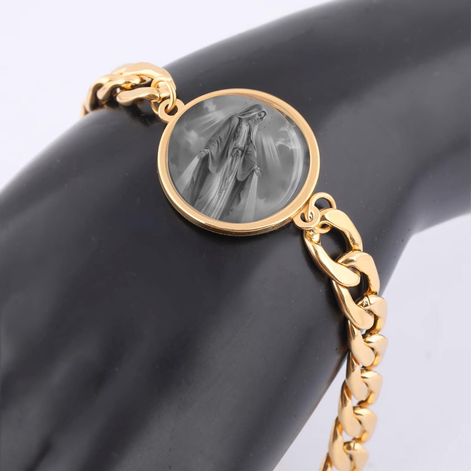 Our Lady Miraculous Black And White Curb Bracelet Gold or Silver tone Religious Jewelry Simple Chain