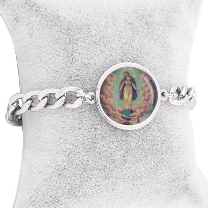 Our Lady Miraculous Manifestations Of The Virgin Mary Curb Bracelet Gold or Silver tone Religious Jewelry Simple Chain