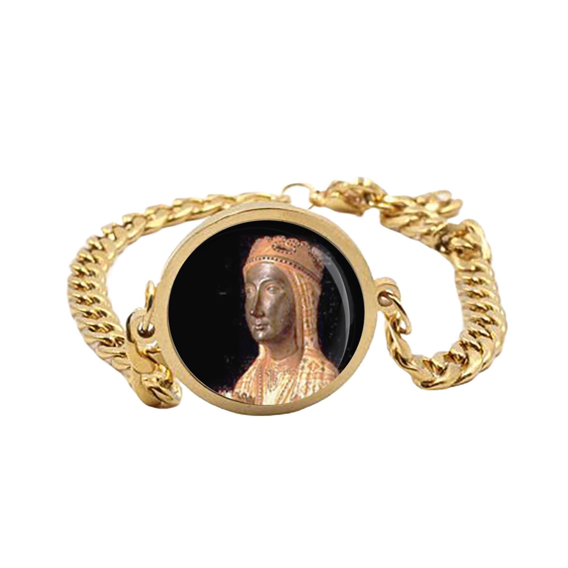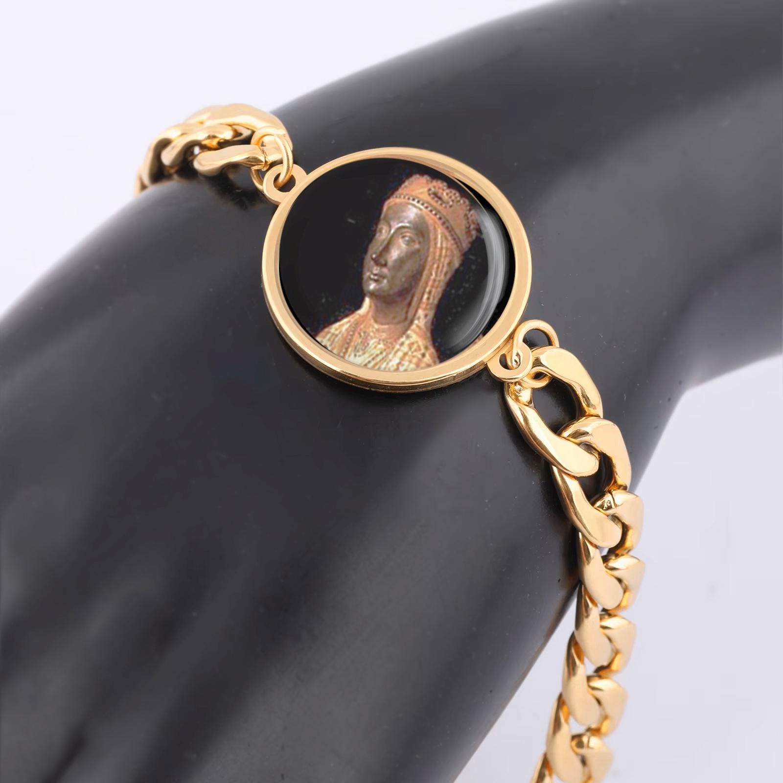 Our Lady Montserrat Mary Curb Bracelet Gold or Silver tone Religious Jewelry Simple Chain