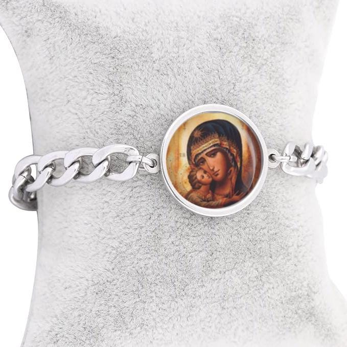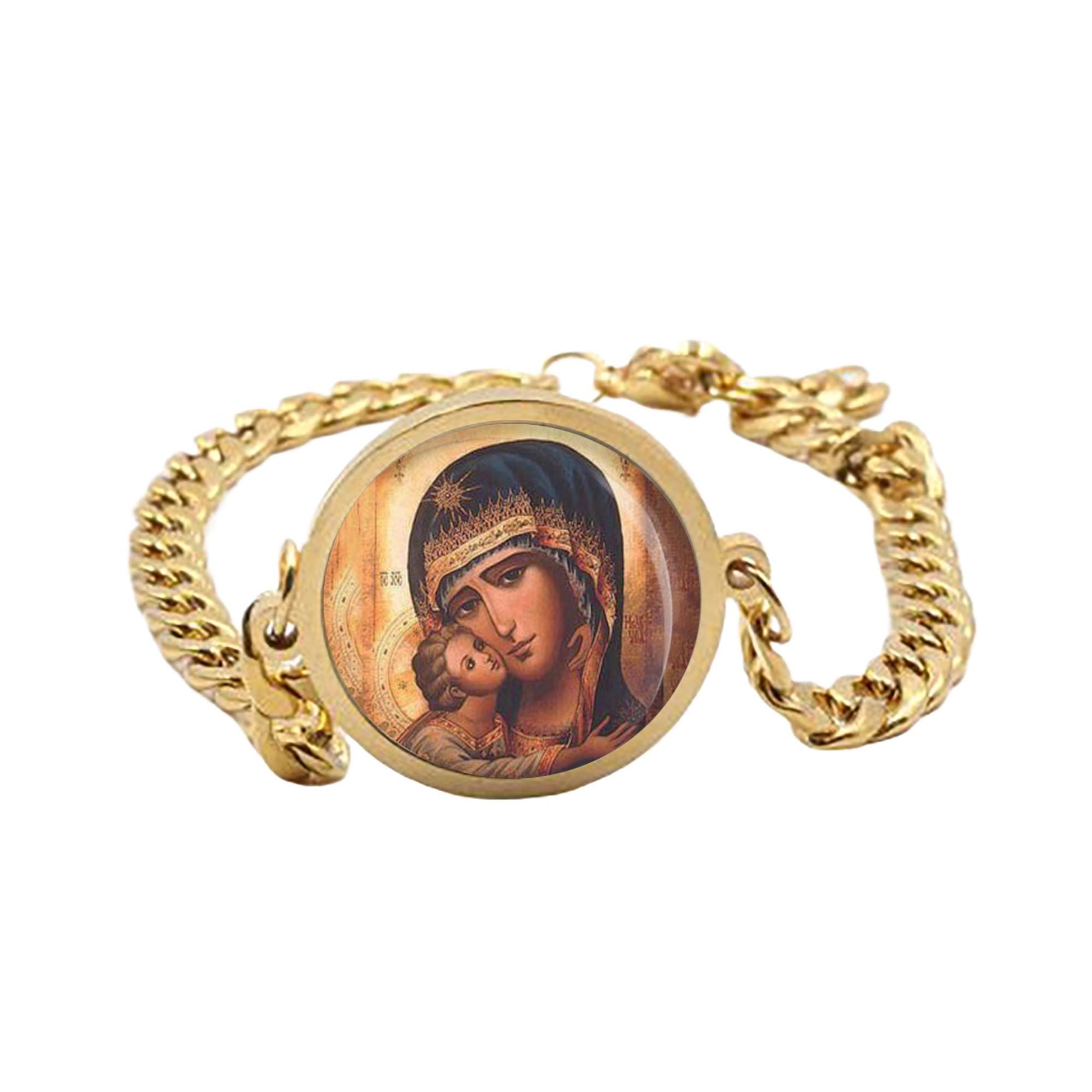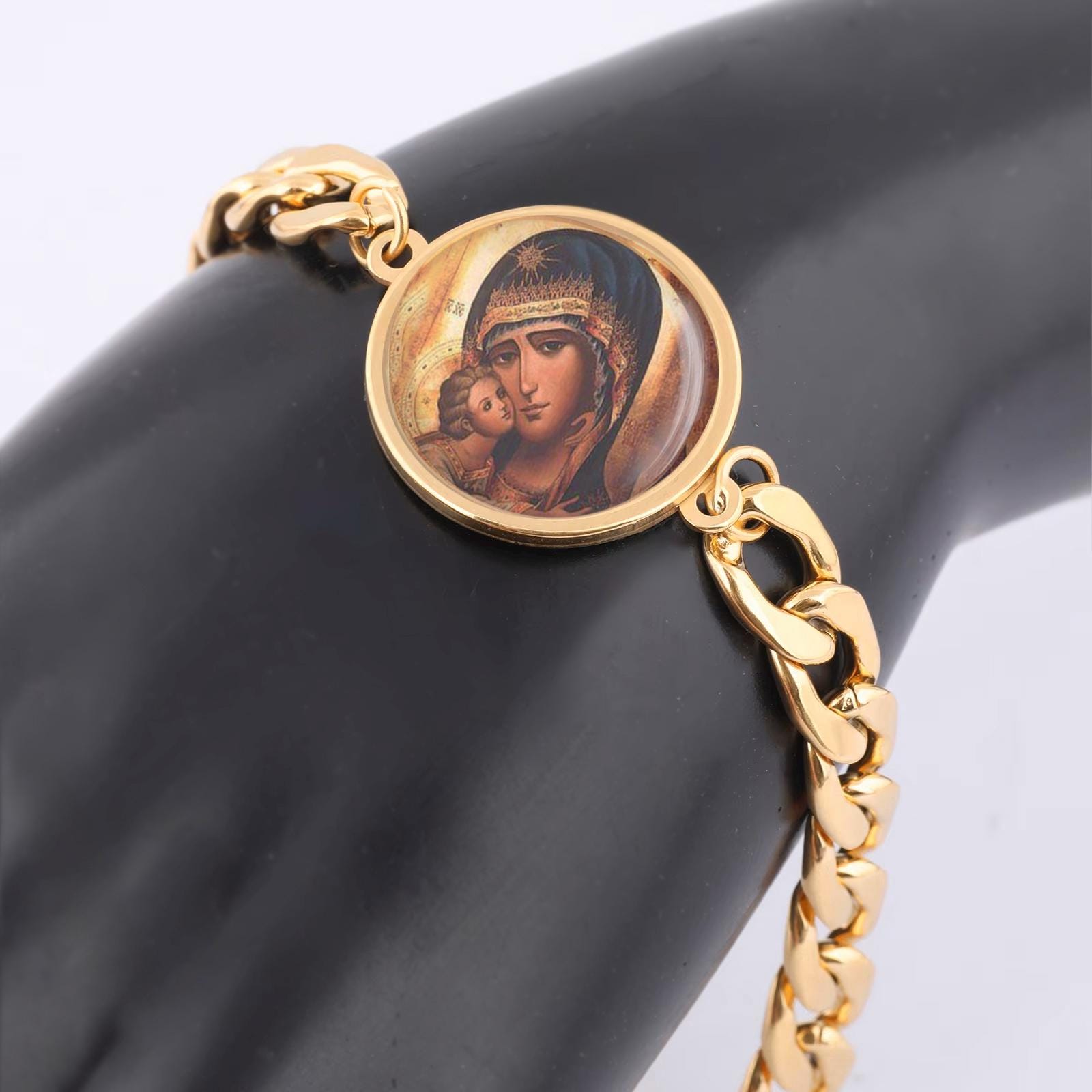 Our Lady Mother Of Jesus Curb Bracelet Gold or Silver tone Religious Jewelry Simple Chain