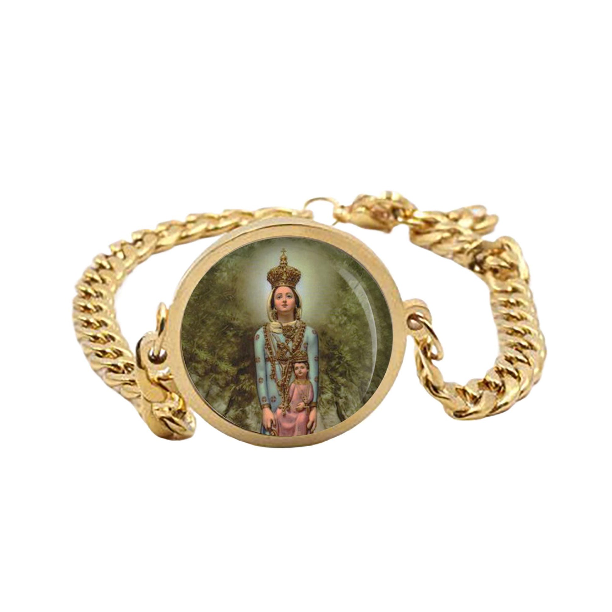 Our Lady Noli Me Tollere Curb Bracelet Gold or Silver tone Religious Jewelry Simple Chain