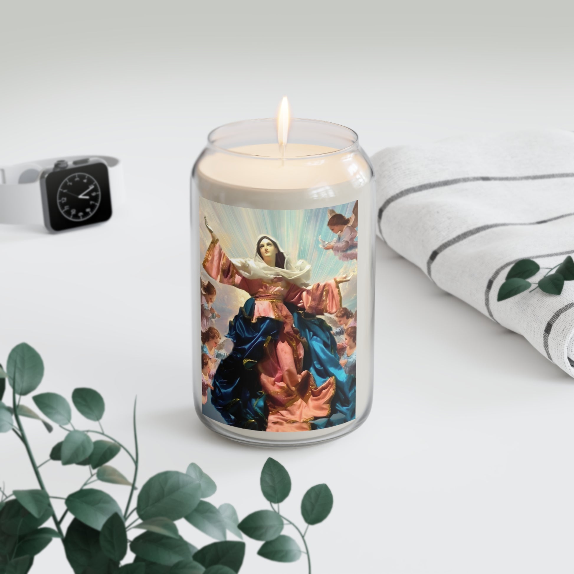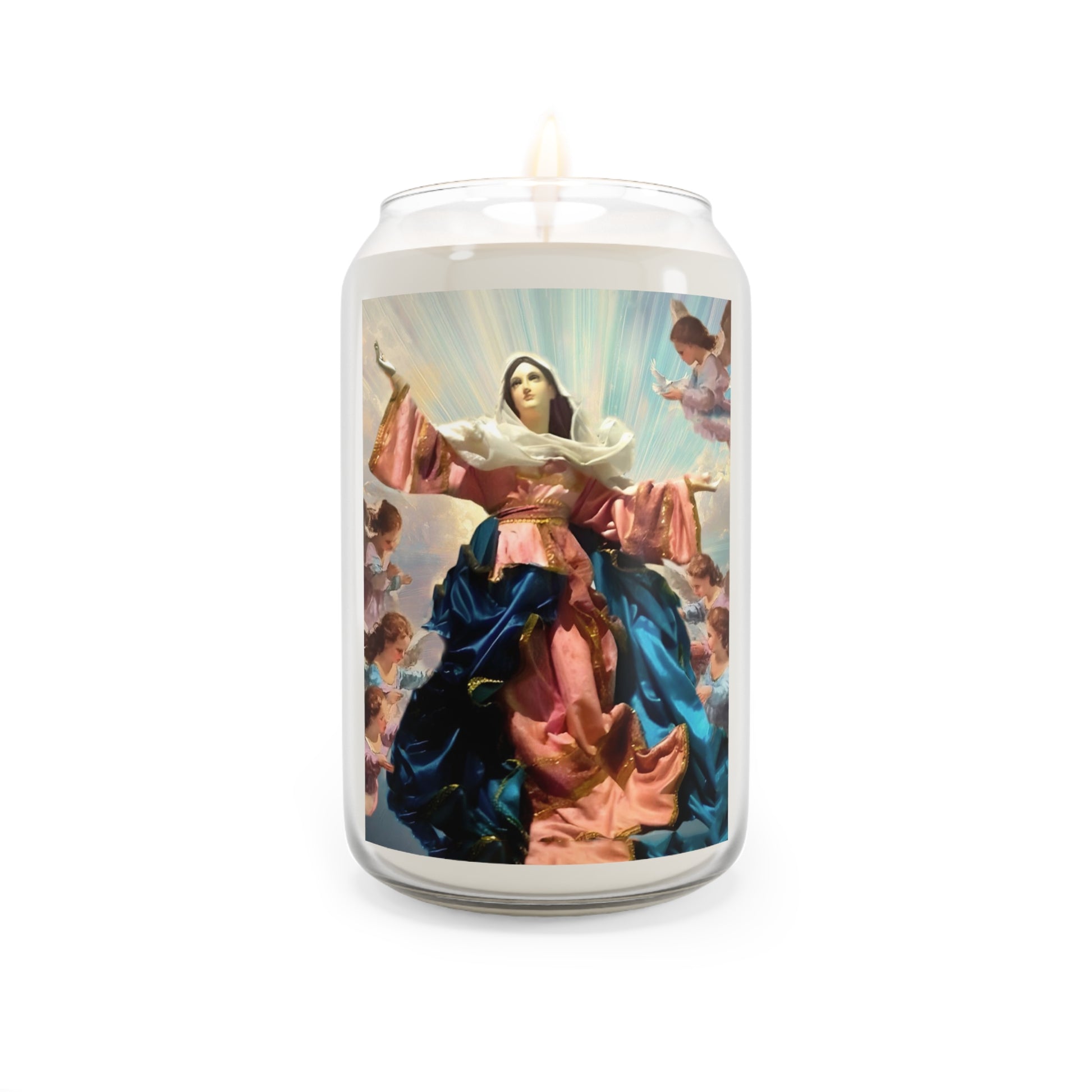 Our Lady of Assumption Mary Catholic Serenity Scented Candle, 13.75oz | Relaxation Gift, Home Decor, Calm Atmosphere, Religious Decor