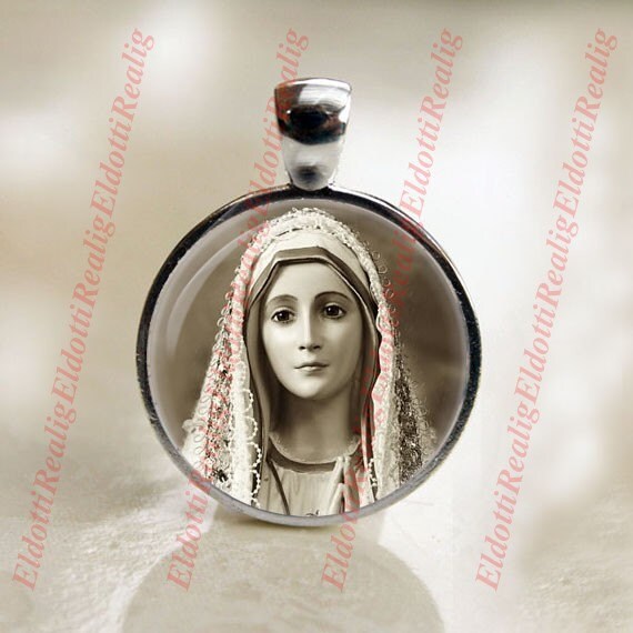 Our Lady of Fatima Catholic Medal Pendant / Charm Cabochon with Glass Dome