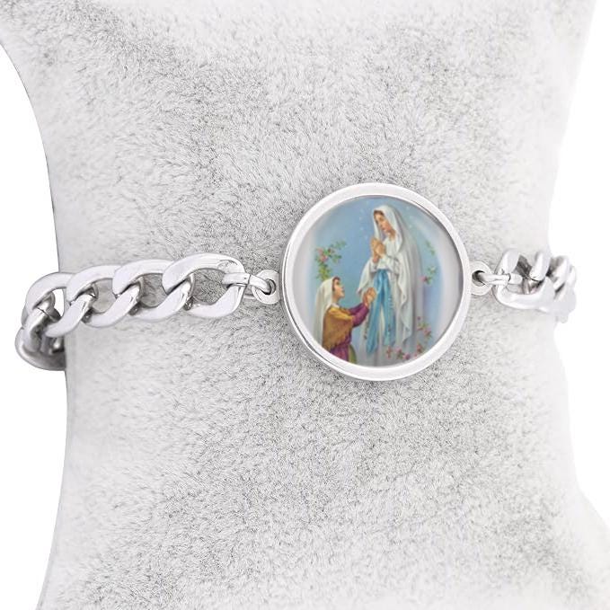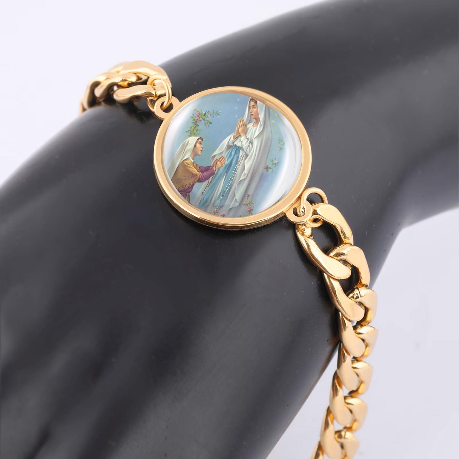 Our Lady of Lourdes Curb Bracelet Gold or Silver tone Religious Jewelry Simple Chain